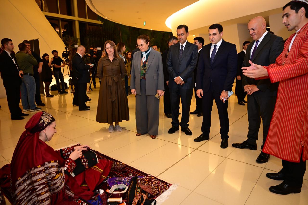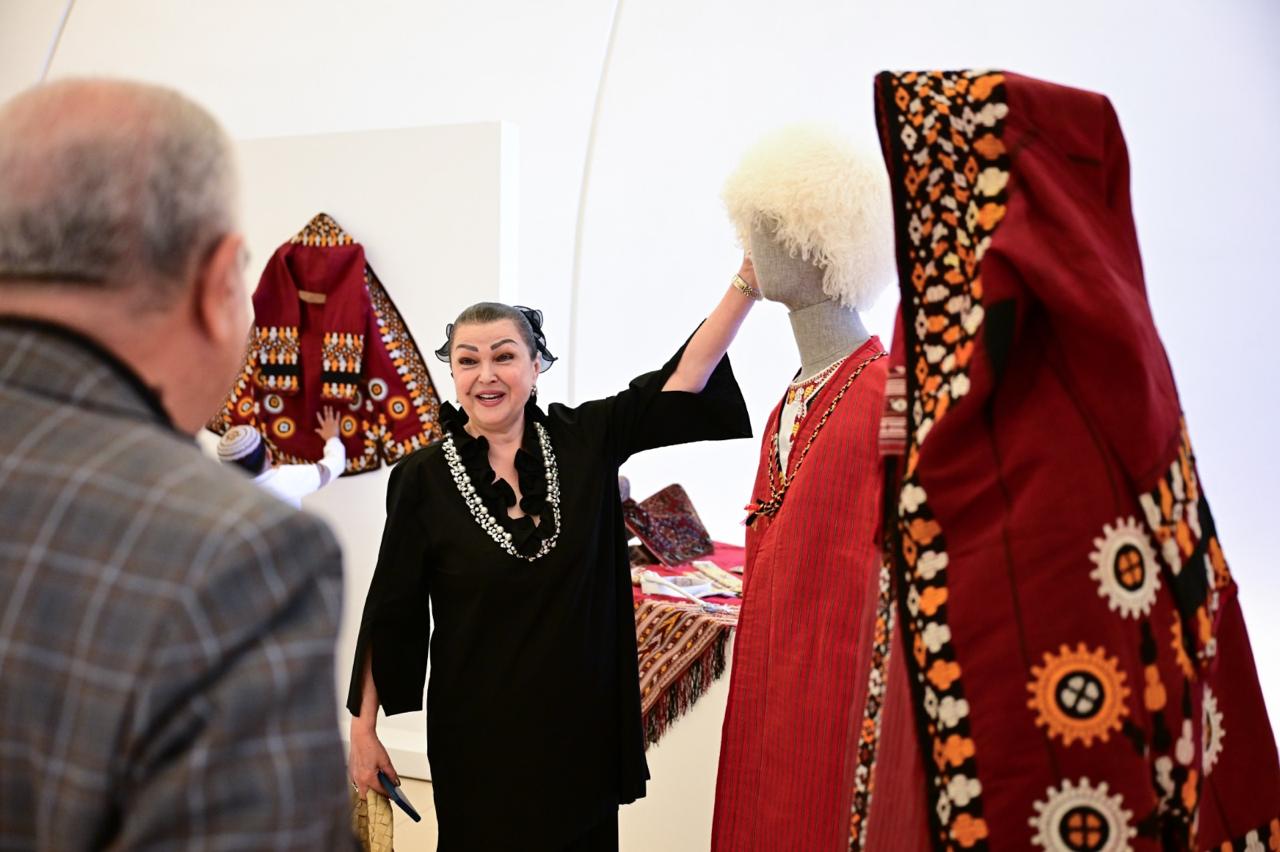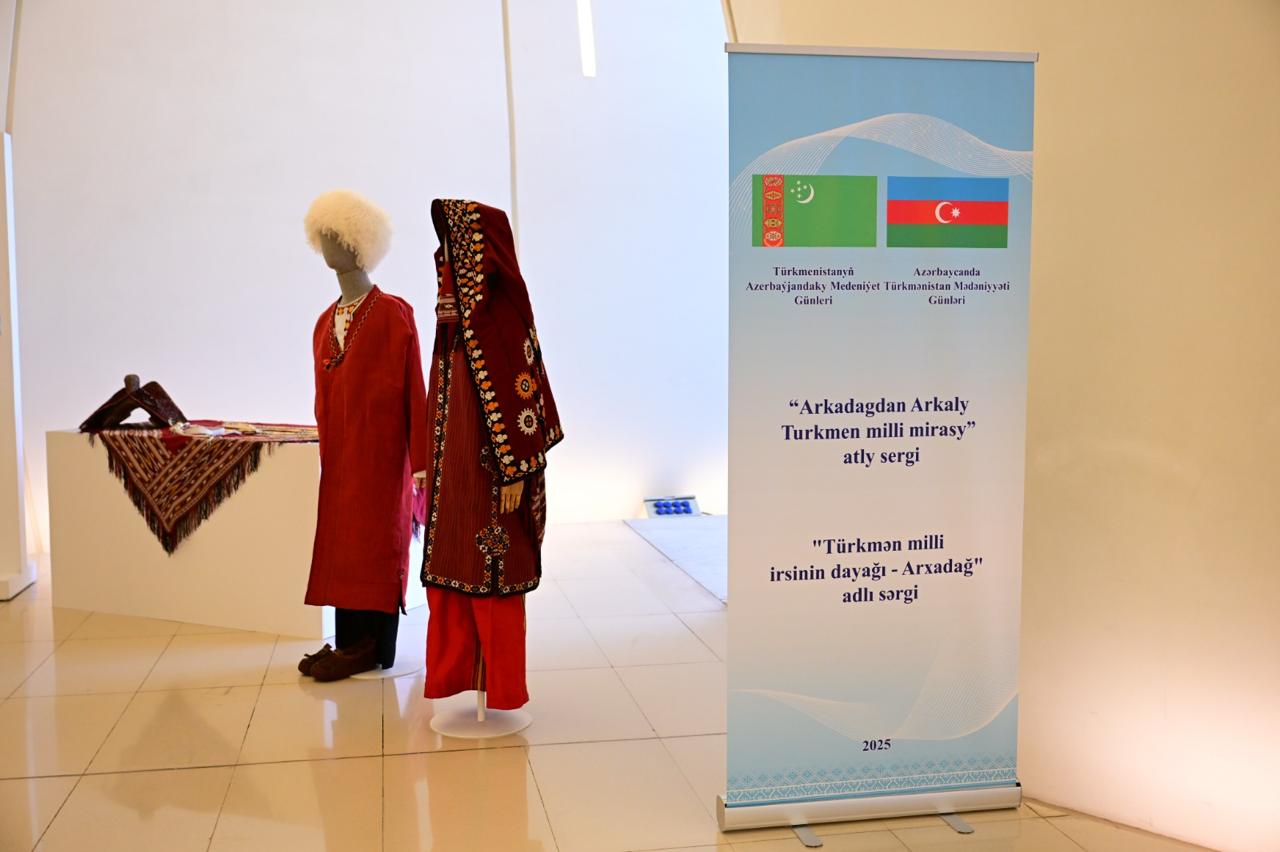 Sonra sərgi ilə tanışlıq olub. Məlumat verilib ki, sərgidə türkmən xalqının kişi və qadın milli geyimləri, xalça, palaz kimi toxuculuq və dekorativ-tətbiqi sənət nümunələri təqdim olunur. Ekspozisiyada həmçinin qardaş xalqın tarixi şəxsiyyətlərinin, eləcə də qədim mədəniyyət abidələri və müasir inkişafını əks etdirən fotolar nümayiş etdirilir.