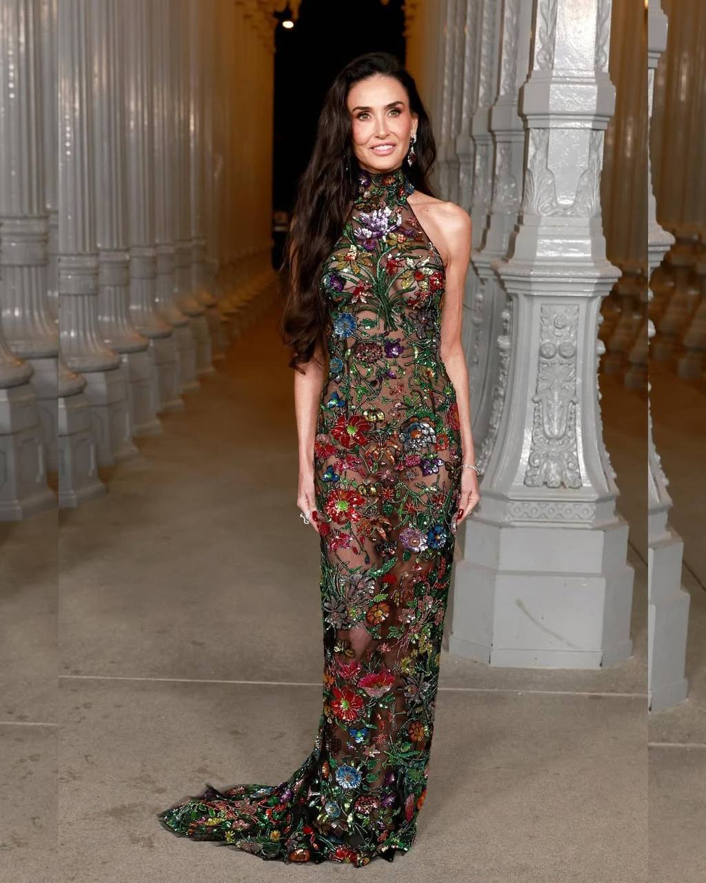 ...Demi Mur, Paris Hilton, Elle Fanning, Sintiya Erivo Skiaparelli rolunda, Demi Lovato Salih Balta rolunda, Zoey Deutch nişanlısı Jimmy Tatro ilə, Sindi Krouford və Kaya Gerber, Eşli Park və Salma Hayek əri Fransua-Henri Pinault ilə birlikdə Los-Ancelesdə keçirilən 2025-ci il LACMA Art + Film Mükafatlarına qatılıblar.