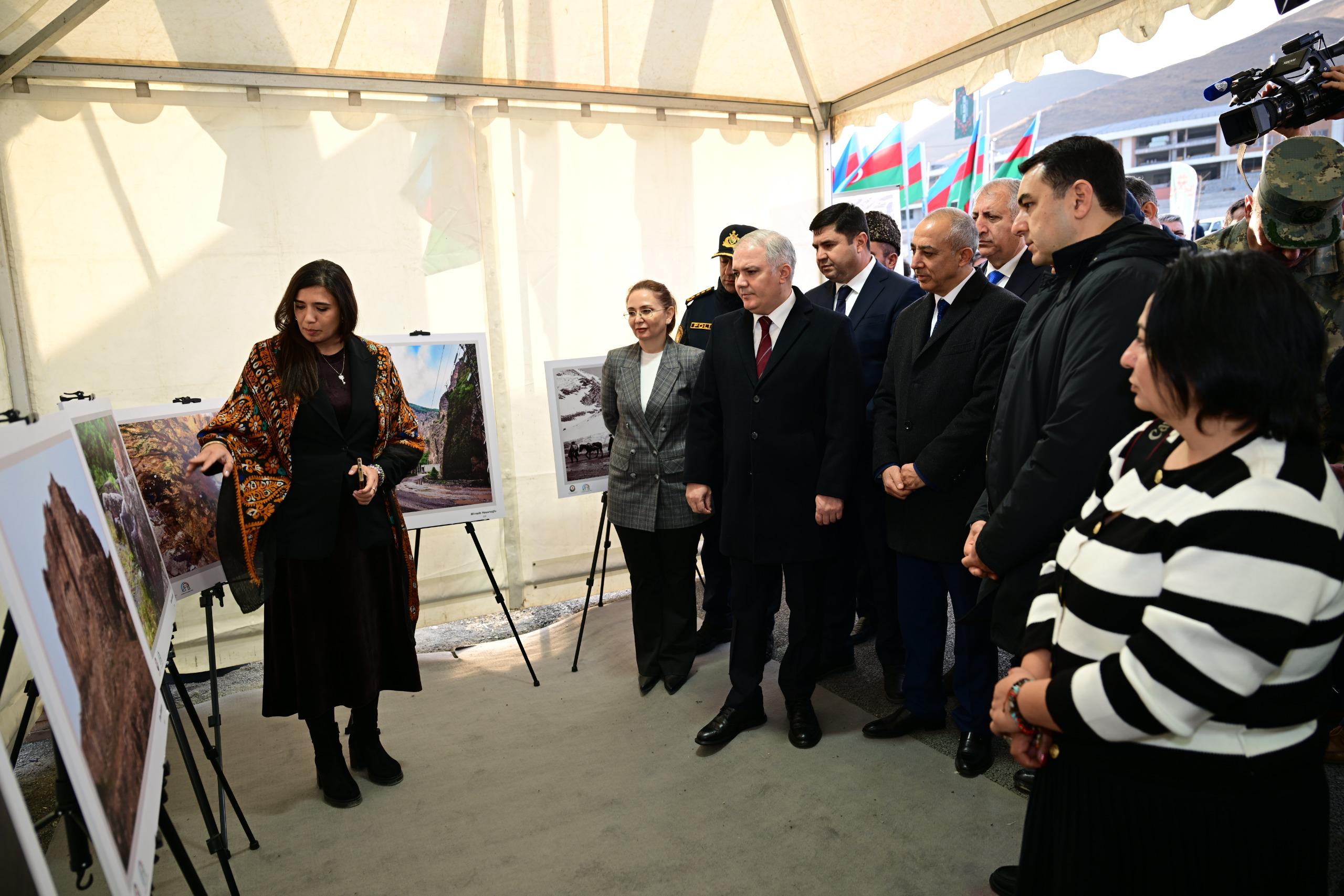Qonaqlara sərgilər haqqında ətraflı məlumat verilib. Qeyd olunub ki, Azərbaycan Fotoqraflar Birliyinin təşkil etdiyi “Kəlbəcər – obyektivdən tarixə” adlı fotosərgidə qurumun üzvü olan fotoqrafların Kəlbəcərə həsr edilən əsərləri yer alıb. Fotolarda Kəlbəcərin işğaldan əvvəlki və sonrakı dövləri, füsunkar təbiət mənzərələri, tarixi abidələri, eləcə də 44 günlük Vətən müharibəsi və birgünlük antiterror əməliyyatı ilə işğaldan azad edilmiş ərazilərdə aparılan bərpa və quruculuq işləri əksini tapıb. Sərgi Kəlbəcərin keçmişi, bu günü və parlaq gələcəyi arasında canlı körpü yaradan vizual hekayələrlə ziyarətçilərə tarixin şahidi olmaq imkanı yaradır.