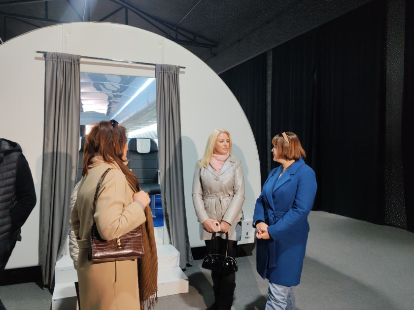Qonaqlar pavilyonda quraşdırılmış - təyyarə, helikopter, həbsxana, elmi laboratoriya və yaşıl ekranda üçtərəfli konstruksiyalara baxış keçiriblər.