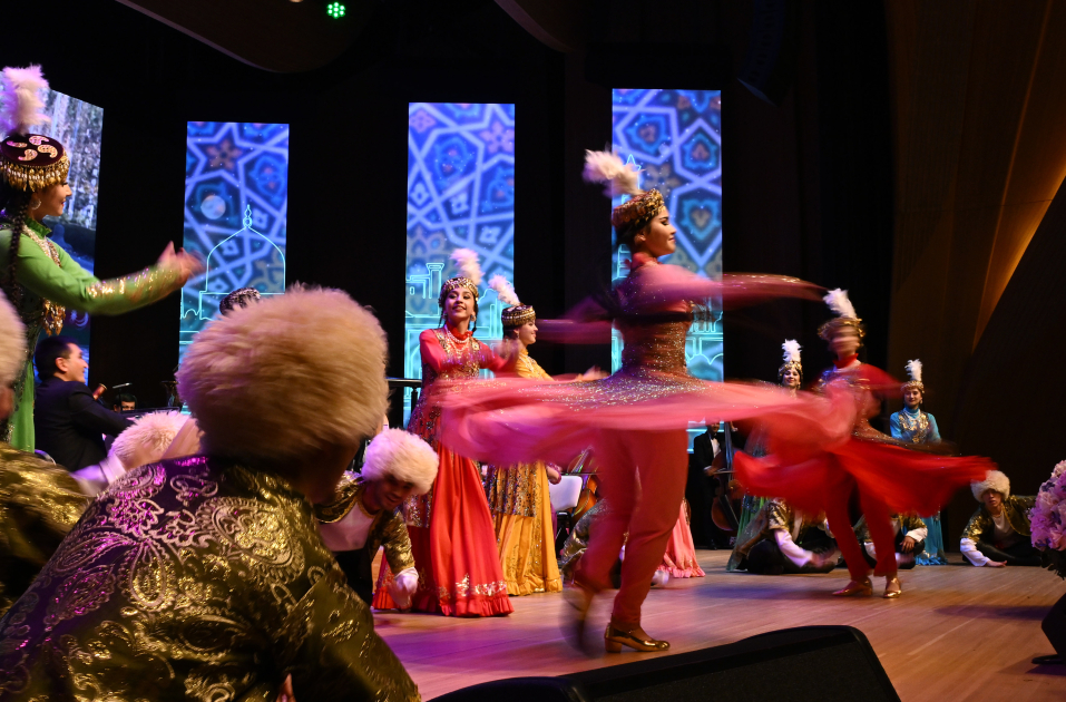 Sonra konsert proqramında Özbəkistanın zəngin mədəni irsini əks etdirən musiqilər və rəqs tamaşaları təqdim olunub.