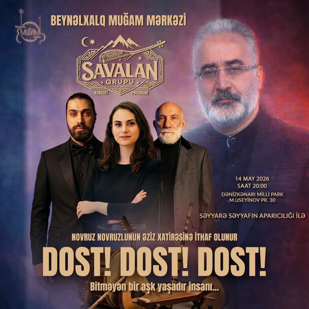 Mayın 14-də saat 20:00-da Beynəlxalq Muğam Mərkəzi səhnəsində Savalan qrupu tərəfindən xüsusi konsert proqramı təqdim olunacaq.