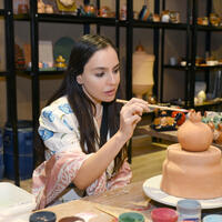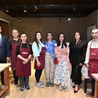 Sonra şirniyyat hazırlanmasında iştirak edən Leyla Əliyeva və Arzu Əliyeva, həmçinin ABAD Keramika mərkəzi ilə tanış olublar.