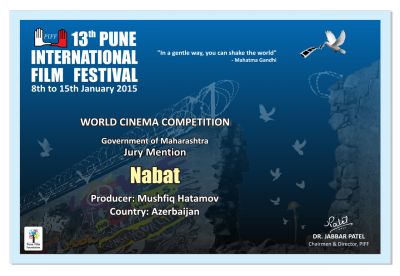 Prodüser Müşfiq Hətəmov XIII Pune Beynəlxalq Film Festivalında "Nabat" bədii filminə görə beynəlxalq münsiflər heyətinin "Xüsusi vurğulama" mükafatına layiq görülüb. Kinostudiyadan SİA-ya verilən məlumata görə, film Hindistanda keçirilən festivalın əsas müsabiqə proqramında yer alıb.