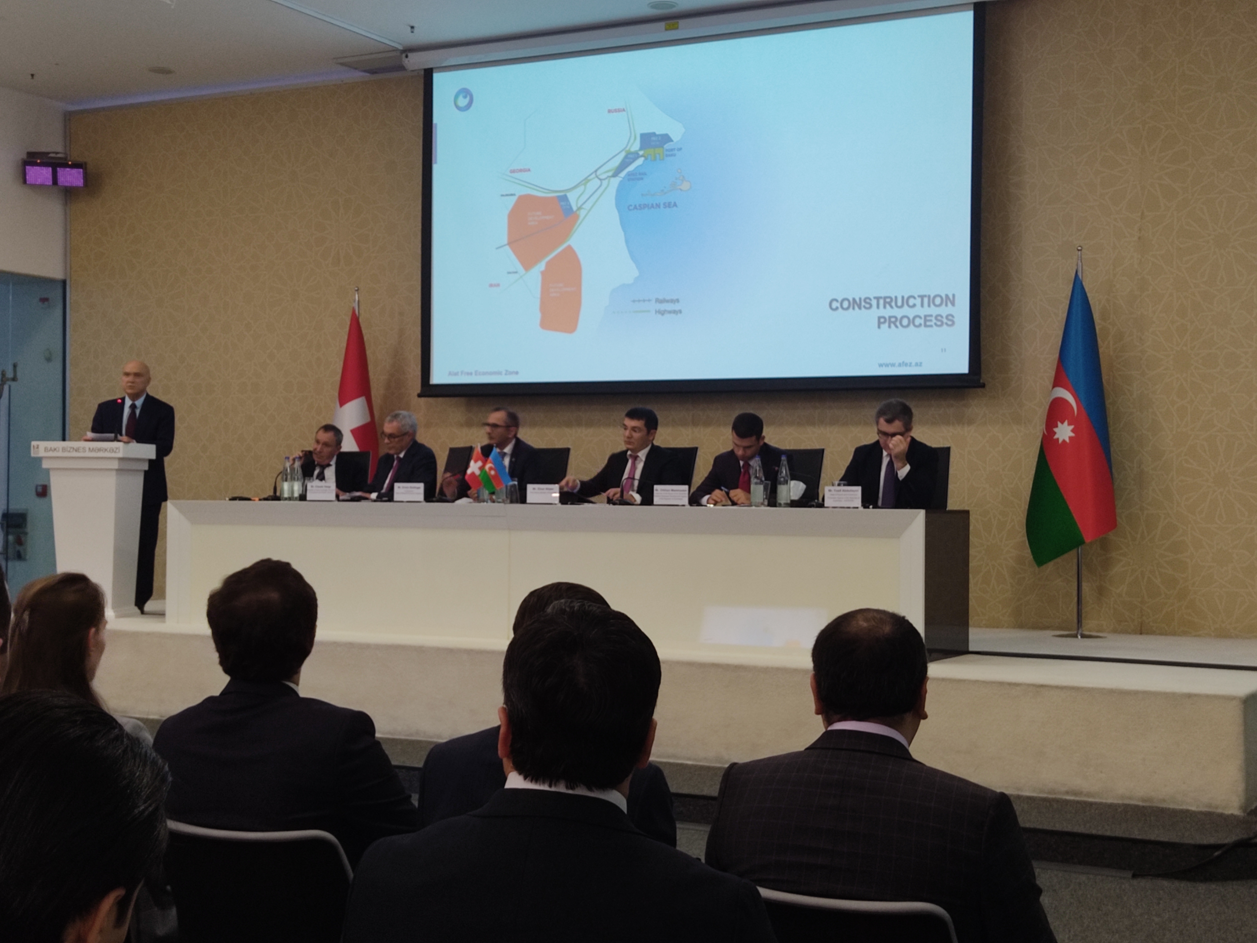 Ələt Azad İqtisadi Zonasının İdarə Heyətinin sədri Valeh Ələsgərov iqtisadi zonanın investisiya potensialına, AZPROMO-nun icraçı direktorunun müavini Zöhrab Qədirov Azərbaycanın biznes və investisiya imkanlarına, İsveçrə-Azərbaycan Ticarət və Sənaye Palatasının (SACCI) prezidenti Klaude Haegi, İsveçrə Birləşmiş Ticarət Palatasının (JCC) idarəedici direktoru Dorit Sallis, JCC-nin Azərbaycan bölməsinin rəhbəri Leyla Bağırzadə və “İSR Holdinq”in baş icraçı direktoru, SACCI-nin əməliyyatlar komitəsinin həmsədri Rauf Xəlilov hər iki ölkənin iş adamları arasında əməkdaşlığa dair təqdimatlarla çıxış ediblər.