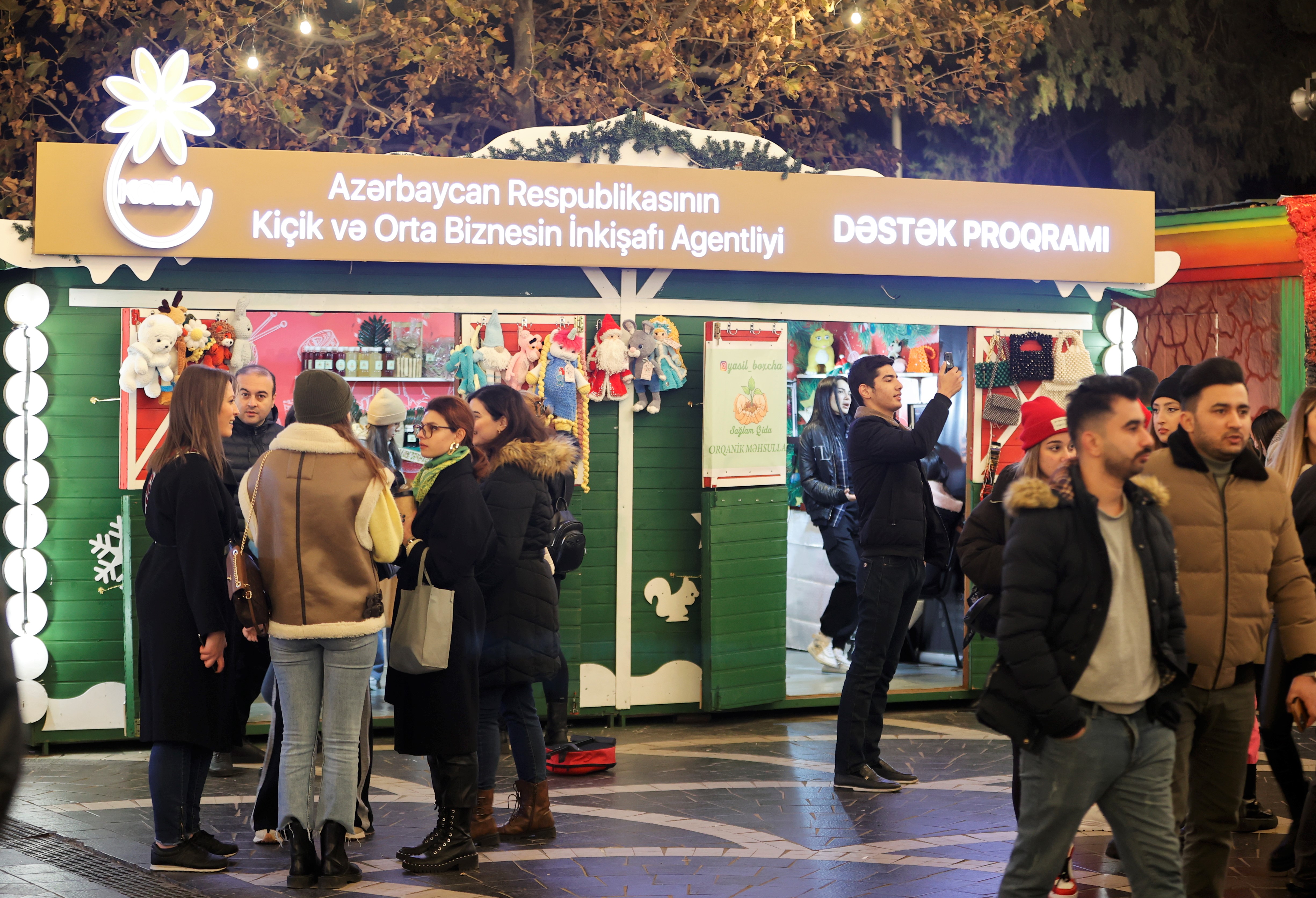 Dekabrın 1-dən Bakının Fəvvarələr Meydanında fəaliyyətə başlamış “Soyuq əllər, isti ürək” xeyriyyə yarmarkasında Kiçik və Orta Biznesin İnkişafı Agentliyinin (KOBİA) Dəstək Proqramı çərçivəsində 30-a yaxın mikro sahibkarın və sənətkarların məhsul və xidmətləri də təqdim olunur. Qurumdan SİA-ya verilən məlumata görə, stenddə çaylar, orqanik qidalar, quru meyvələr, müxtəlif ədviyyatlar, əl işləri, toxunma oyuncaqlar, bijuteriya, vitrajlar, kiçik rəsmlər, taxtadan suvenirlər, orqanik sabunlar və s. sərgilənir və satılır.