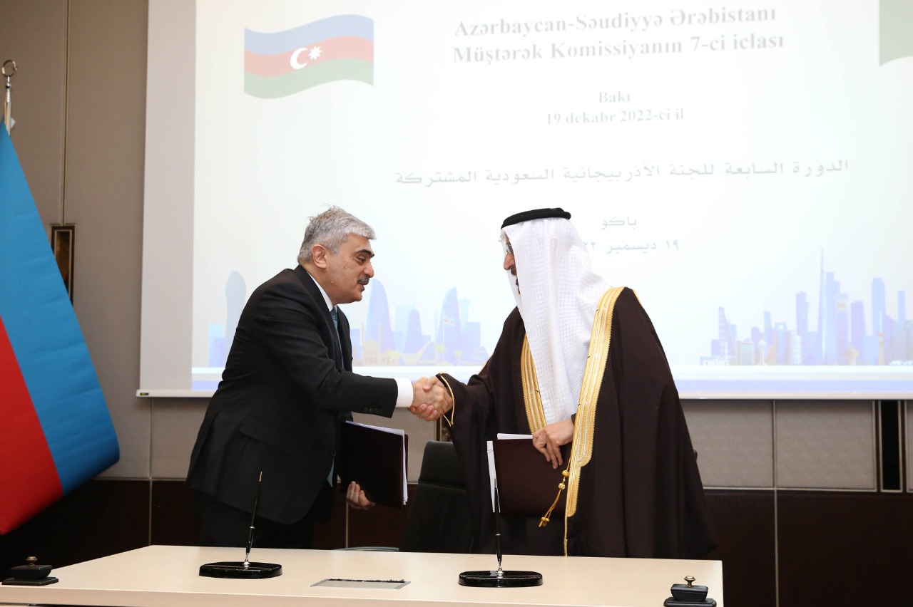 Tədbirdə maliyyə naziri Samir Şərifov bildirib ki, 2022-ci ildə Azərbaycan Respublikası ilə Səudiyyə Ərəbistanı arasında diplomatik münasibətlərin 30-cu ildönümü qeyd olunur: "Bu, həqiqətən tarixi bir hadisədir. Bu gün Azərbaycan ilə Səudiyyə Ərəbistan arasında münasibətlər çox güclü siyasi zəmin əsasında inkişaf etməkdədir. İlham Əliyev tərəfindən Müştərək Kommissiyanın həmsədrlərinə bizim əməkdaşlığımıza baxışı barədə konkret istiqamətlər verildi ki, bu da bizim işimizə əlavə təkan verəcəkdir. Səudiyyə Ərəbistan nümayəndələri Azərbaycanın işğaldan azad olunmuş ərazilərinə səfər edib. Bu, böyük bir addım idi".