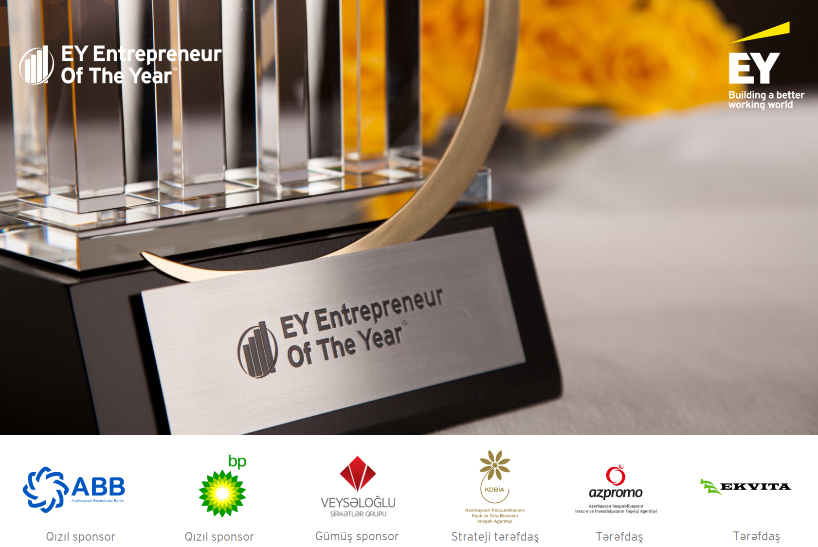 “EY İlin İş Adamı” müsabiqəsi Azərbaycan Respublikasının Kiçik və Orta Biznesin İnkişafı Agentliyi (KOBİA) ilə strateji tərəfdaşlıq çərçivəsində ABB, bp və Veyseloğlu Şirkətlər Qrupunun maliyyə dəstəyi ilə keçirilir. AZPROMO və EKVITA proqramın tərəfdaşları sırasındadır.