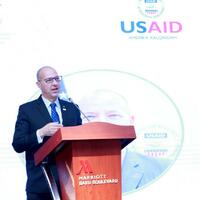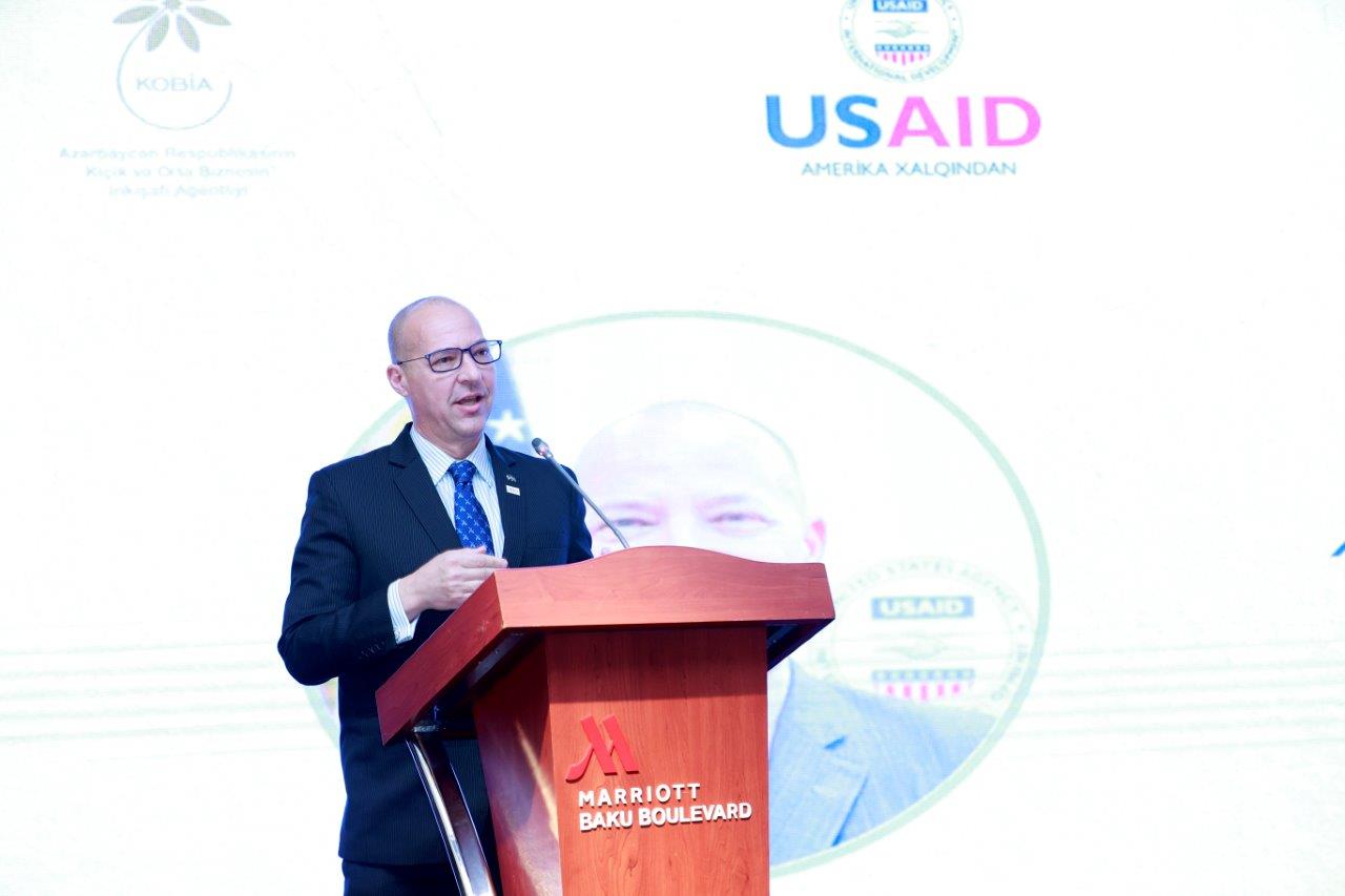 USAID-in Azərbaycan üzrə Missiya Direktoru Maykl Nirbas: “Əminəm ki, bu konfrans hamınızın məlumat paylaşa biləcəyi, yeni tərəfdaşlıqlar üçün əlaqələr qurmağınıza imkan yaradan, yeni texniki biliklər qazanacağınız və digər ölkələrin borc və kapital maliyyələşməsini necə təşkil etdiyi barədə birbaşa məlumat əldə edə biləcəyiniz platforma olacaq. Bu gün ekspertlərin iştirakı ilə baş tutacaq panellər layihə maliyyələşdirilməsi üçün müxtəlif seçimlərin aydınlaşdırılmasına da imkan yaradacaqdır”.