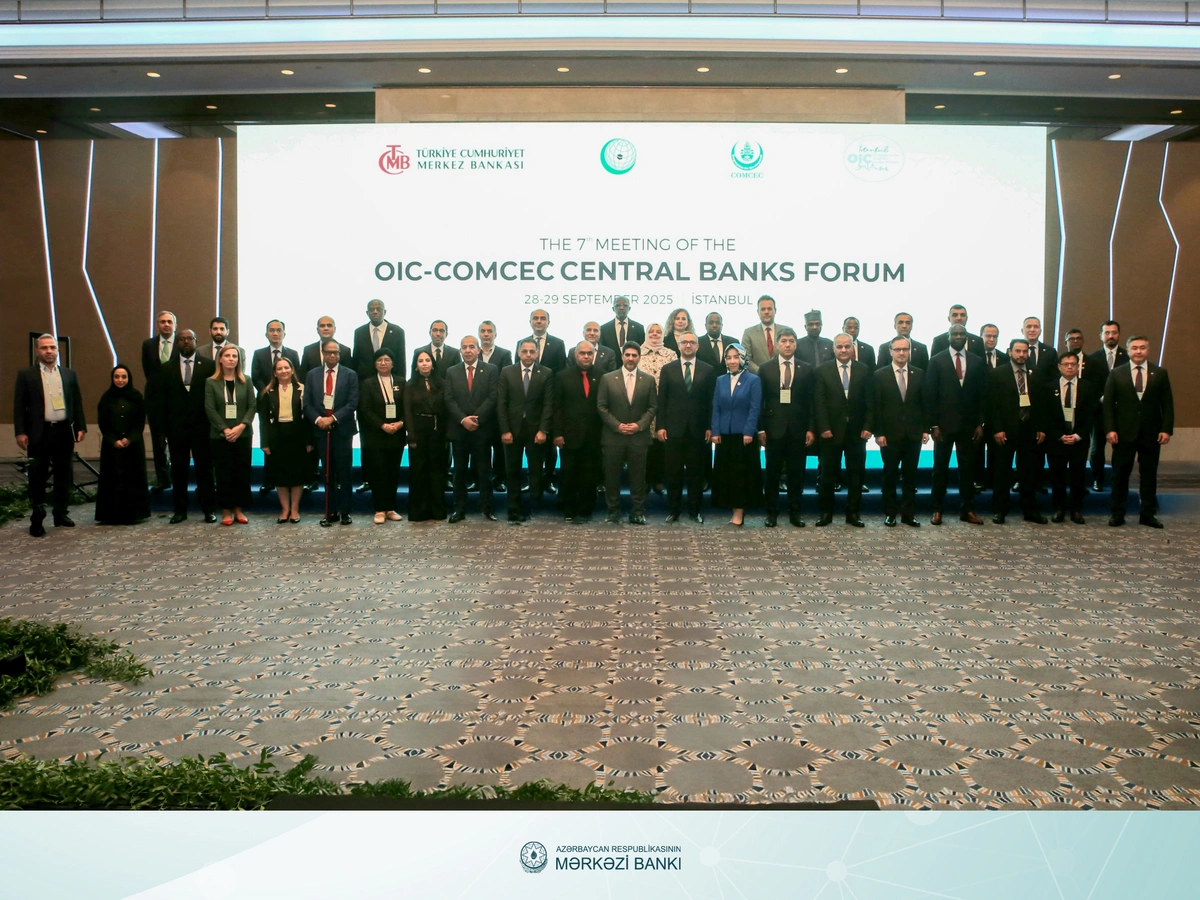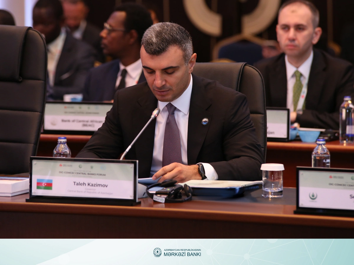 Azərbaycan Mərkəzi Bankının (AMB) sədri Taleh Kazımovun rəhbərlik etdiyi nümayəndə heyəti İslam Əməkdaşlıq Təşkilatının (İƏT) İqtisadi və Ticarət Əməkdaşlığı Daimi Komitəsi (OIC-COMCEC) Mərkəzi Banklarının 7-ci Forumunda iştirak etmək məqsədilə Türkiyənin İstanbul şəhərində işgüzar səfərdə olub. SİA AMB-yə istinadən xəbər verir ki, sədr forumda "Ödəniş xidmətləri və sərhədsiz əməliyyatlar: praktik sessiyadan nəticələr" mövzusunda çıxış edərək ödəniş sistemləri və transsərhəd əməliyyatlara dair fikirlərini tədbir iştirakçıları ilə bölüşüb.