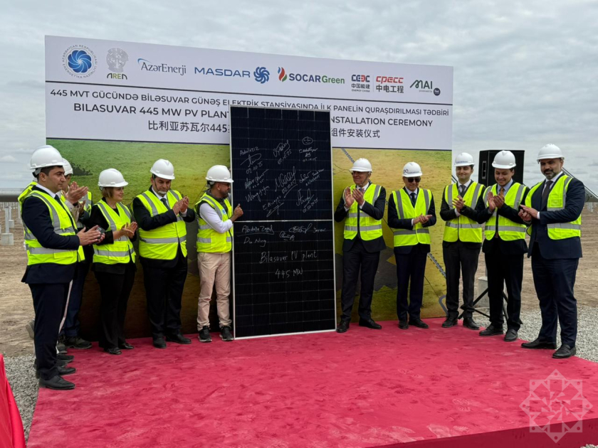 445 MVt gücündə Biləsuvar Günəş Elektrik Stansiyasında (GES) ilk günəş panelinin quraşdırılması mərasimi keçirilib. SİA-nın bölgə müxbiri xəbər verir ki, ümumi sahəsi 1400 hektar olan Biləsuvar GES-də Çinin “JA Solar” şirkətinin istehsalı olan, hər iki üzü elektrik enerjisi istehsal edə bilən 943 mindən çox panelin quraşdırılması nəzərdə tutulur. Gücü 625-630 Vt təşkil edən Günəş panelləri mərhələli şəkildə əraziyə gətirilir. Stansiya 8131 ədəd tək oxlu izləmə sistemi ilə təchiz olunacaq. İstismara verildikdən sonra panellərin təmizlənməsi xüsusi qurğular vasitəsilə avtomatik həyata keçiriləcək. Stansiyanın növbəti il istismara verilməsi planlaşdırılır.