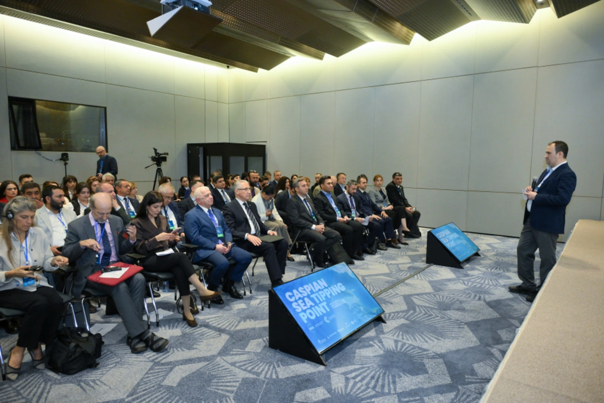 Qeyd olunub ki, Xəzərin səviyyəsində son onillikdə müşahidə olunan enmə prosesləri həm sahilyanı infrastruktur, həm də ekosistemlər üçün ciddi fəsadlar yaradır. Son 30 ildə 2,5 metr enmə yaranıb ki, bu da balıqçılıq təsərrüfatı, yaşayış məntəqələri və ekosistemlərin dayanıqlığına mənfi təsir göstərir. Suyun çəkilməsi də yeni ekoloji risklər yaradır. Belə ki, torpaq duzlaşması, bioloji müxtəlifliyin zəifləməsi kimi problemlər ortaya çıxır. Bildirilib ki, qlobal əhəmiyyətə malik olan Xəzər dənizində iqlim dəyişikliyi səbəbindən gedən proseslərin təsir və nəticələri regional xarakter daşıyır və yalnız koordinasiyalı tədbirlər, ortaq tədqiqatlar və qarşılıqlı etimad şəraitində aradan qaldırıla bilər. Həmçinin Azərbaycanın COP29 sədrliyi dövründə əldə olunan nəticələrin praktiki addımlara transformasiyasının vacib olduğu da vurğulanıb.