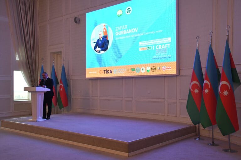 Tədbir çərçivəsində kənd təsərrüfatında innovativtexnologiyalar, qida təhlükəsizliyi, davamlı istehsal vəiqlim dəyişikliklərinə uyğunlaşma mövzularında elmimüzakirələr aparılır.