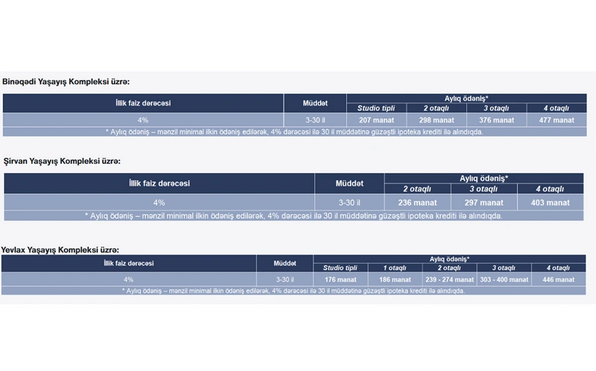 4 otaqlı mənzilin qiyməti - 84 150 manatdan başlayır.