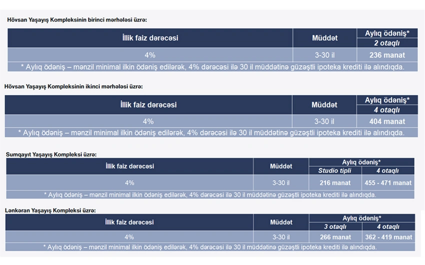 Bu dəfə satışda olan mənzillər ipoteka kreditindən istifadə etməklə, həm də öz vəsaiti hesabına ödənilən üsulla təklif olunur.