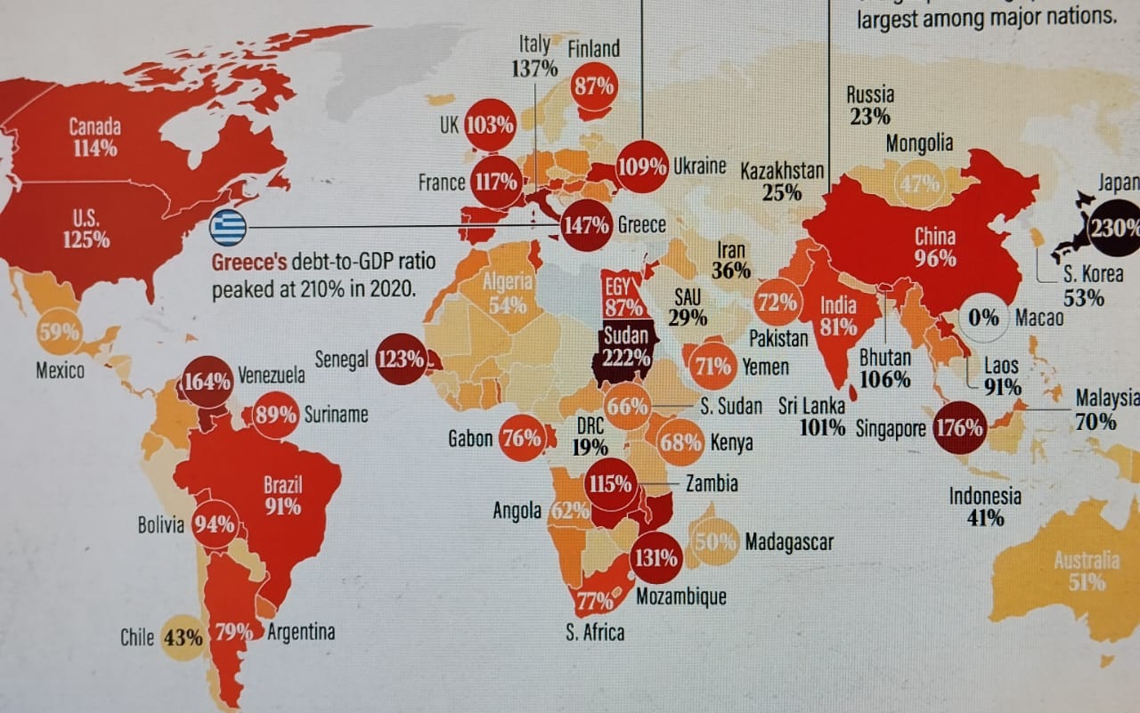 Dünyada dövlətlərin borcu davamlı olaraq artmaqdadır və 2025-ci ildə dünyanın bir çox ölkəsində ÜDM-ə nisbətdə borc səviyyələri yüksəlməkdədir. Məsələn, 2025-ci ilə dair məlumatlara görə, “ümumi hökumət borcu”nun ÜDM-yə nisbəti üzrə yüksək rəqəmlər mövcuddur. Japoniyada bu göstərici təxminən 230 % civarındadır. Dollarla ifadə olunan borq baxımından isə: ən böyük dövlət borclarına malik ölkələr sırasına ABŞ (~ $38 trilyon), Çin (~ $18.7 trilyon) və Yaponiyanın da daxil olduğu ölkələr daxildir. Ümumi dünya üzrə hökumət borcu ÜDM-yə nisbətdə və dollarla ifadə edildikdə artan tendensiyadadır.