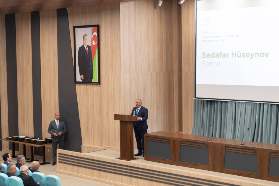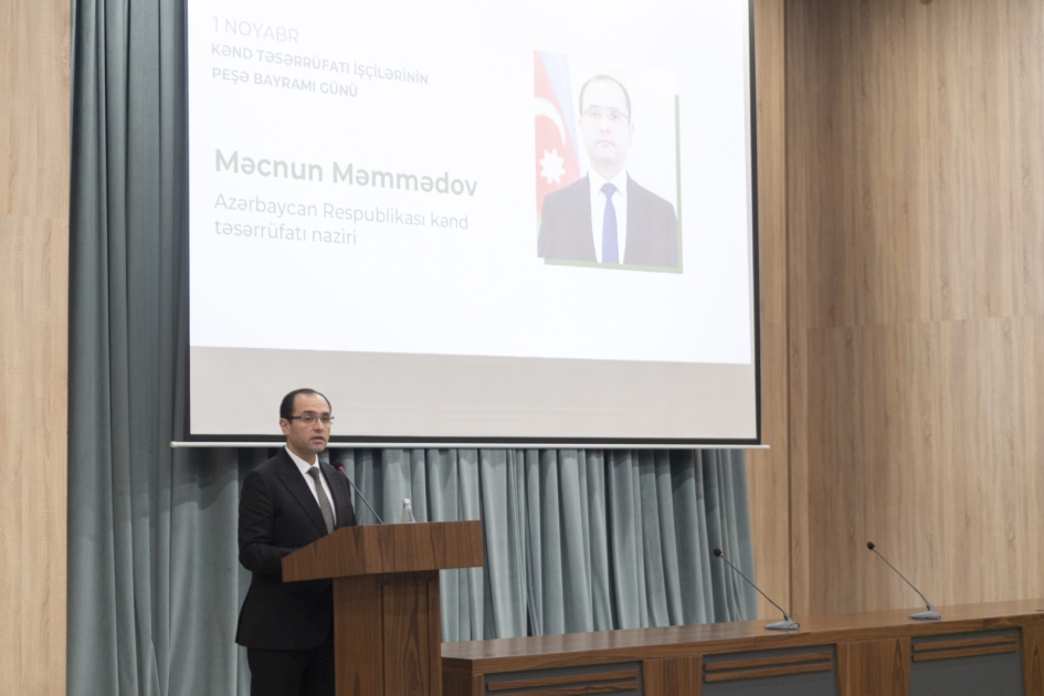 Tədbiri açan kənd təsərrüfatı naziri Məcnun Məmmədov peşə bayramı münasibətilə fermerləri təbrik edib. Nazir bildirib ki, Azərbaycan Respublikasında aqrar siyasətin formalaşmasının və müasir inkişaf mərhələsinə keçidin əsası Ulu Öndər Heydər Əliyev tərəfindən qoyulub. Ümummilli Liderin rəhbərliyi ilə kənd təsərrüfatının iqtisadiyyatda strateji əhəmiyyəti müəyyən edilib, torpaq islahatları həyata keçirilib, mülkiyyət münasibətləri formalaşdırılıb, kənd əhalisinin sosial rifahının yüksəldilməsi istiqamətində fundamental addımlar atılıb. Ulu Öndər Heydər Əliyevin təşəbbüsü ilə qəbul olunan mühüm qərarlar nəticəsində aqrar sahədə dövlət idarəçiliyi sistemi təkmilləşdirilib, ərzaq təminatında daxili istehsalın payı əhəmiyyətli dərəcədə artıb.