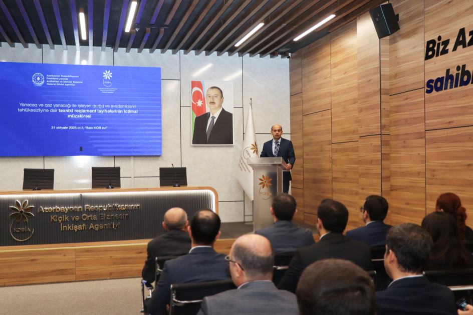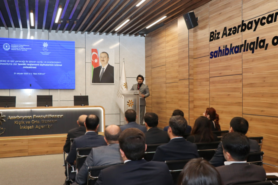 Azərbaycan Respublikasının Prezidenti yanında Antiinhisar və İstehlak Bazarına Nəzarət Dövlət Agentliyi və Kiçik və Orta Biznesin İnkişafı Agentliyinin (KOBİA) birgə təşkilatçılığı ilə “Bakı KOB evi”ndə Azərbaycan Respublikasının Energetika Nazirliyi tərəfindən hazırlanmış “Avtomobil və aviasiya benzinləri, dizel, gəmi və reaktiv mühərrik yanacaqları və mazuta dair tələblər haqqında”, “Yanacaq kimi istifadə üçün mayeləşdirilmiş karbohidrogen qazlarına dair tələblər haqqında”, “Qaz yanacağı ilə işləyən qurğuların təhlükəsizliyi haqqında” və Azərbaycan Respublikasının Fövqəladə Hallar Nazirliyi tərəfindən hazırlanmış “Daşınma və (və ya) istifadə üçün hazırlanmış təbii yanar qazın təhlükəsizliyi haqqında” texniki reqlament layihələrinin ictimai dinləmə və müzakirəsi keçirilib. Dövlət Agentliyindən SİA-ya bildirilib ki, tədbirdə Antiinhisar və İstehlak Bazarına Nəzarət Dövlət Agentliyinin Standartlaşdırma, texniki tənzimləmə və sertifikatlaşdırma şöbəsinin müdiri Elməddin Quluyev və KOBİA-nın KOB dostu departamentinin müdir müavini Rauf Tağıyev çıxış ediblər.