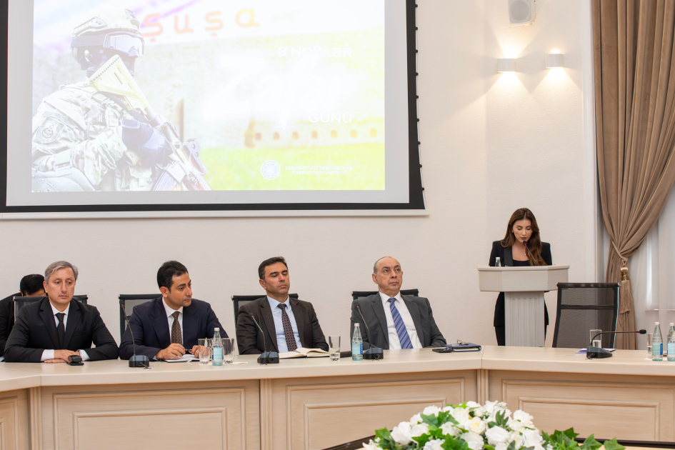 Energetika naziri Pərviz Şahbazov Azərbaycanın suverenliyinin və ərazi bütövlüyünün tam bərpasının, əldə olunan böyük siyasi qələbələr fonunda regionun geosiyasi arxitekturasının yenidən qurulmasının Müzəffər Ali Baş Komandan cənab İlham Əliyevin möhtəşəm nailiyyəti olduğunu vurğulayıb. Bildirilib ki, 44 günlük Vətən müharibəsi və 23 saatlıq antiterror əməliyyatının misilsiz nəticələri Azərbaycan xalqının birlik və əzmkarlığının təntənəsi, igid oğullarımızın şücaətinin bənzərsiz qəhrəmanlıq salnaməsidir. Çıxışda Qələbəmizi əbədiləşdirən 8 Noyabr - Zəfər Gününün tarixi əhəmiyyətindən bəhs edilib. Azərbaycanın postsovet məkanında separatizmə son qoyan ilk ölkə olduğu qeyd edilib. Azərbaycan Ordusunun cəmi bir sutkada Qarabağa tam nəzarəti bərpa etməsi region tarixində bənzəri olmayan hadisə kimi dəyərləndirilib.