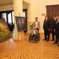 Mərdəkan Mədəniyyət sarayında davam edən tədbirdə iştirakçılar sarayın foyesində təşkil edilmiş Azərbaycan Rəssamlar İttifaqının və Naxçıvan MR Rəssamlar Birliyinin üzvü Ramil Əhmədovun əl işlərindən ibarət rəsm sərgisiylə tanış olublar.
