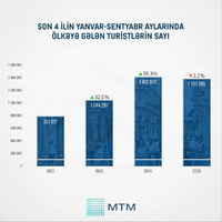 Media Təhlil Mərkəzinin (MTM) Dövlət Statistika Komitəsinin açıqladığı rəsmi rəqəmlər əsasında apardığı təhlilə görə, 2025-ci ilin yanvar-sentyabr aylarında Azərbaycana turizm məqsədilə gələn xarici vətəndaşların sayı 1 381 709 nəfər təşkil edib.
