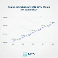 Media Təhlil Mərkəzinin (MTM) Dövlət Statistika Komitəsinin rəsmi məlumatları əsasında apardığı təhlilə görə, ölkədə dövriyyədə olan ödəniş kartlarının sayı son beş ildə, hər ilin sentyabr ayının sonuna olan vəziyyət üzrə ardıcıl artım nümayiş etdirib. SİA xəbər verir ki, 2021-ci ilin sonunda dövriyyədə 10 841 662 ədəd ödəniş kartı olub.