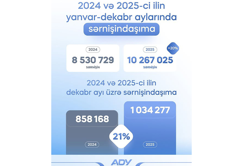Ötən ilin dekabr ayında isə 2024-cü ilin eyni dövrü ilə müqayisədə 21 faiz daha çox sərnişin daşınıb.