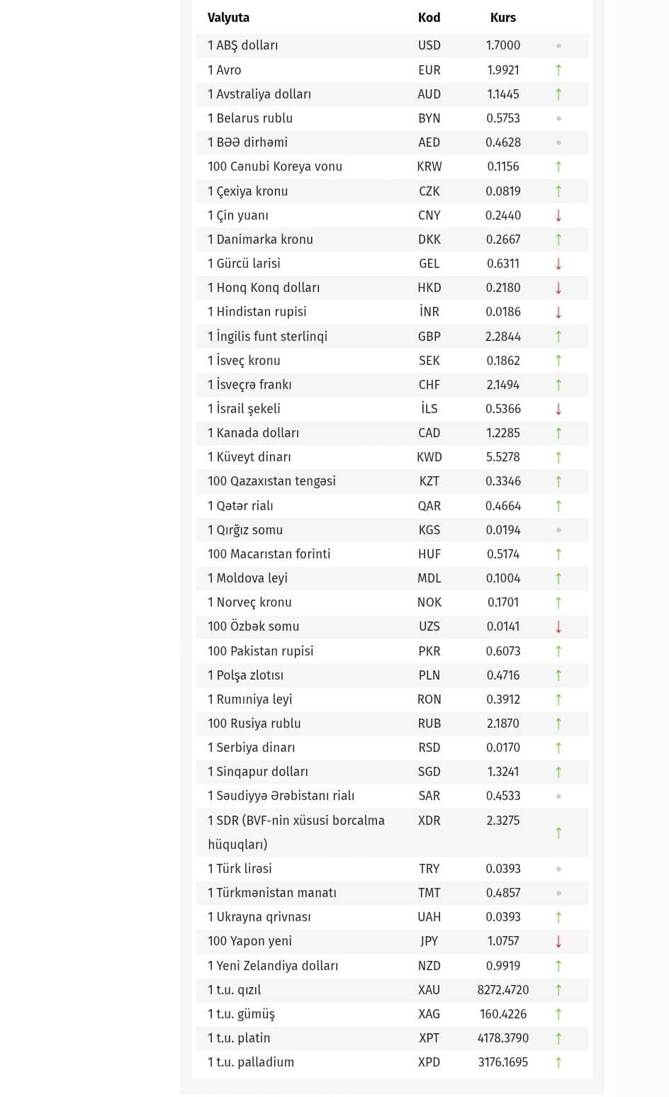 Azərbaycan Mərkəzi Bankı bu günün valyuta məzənnələrini açıqlayıb.