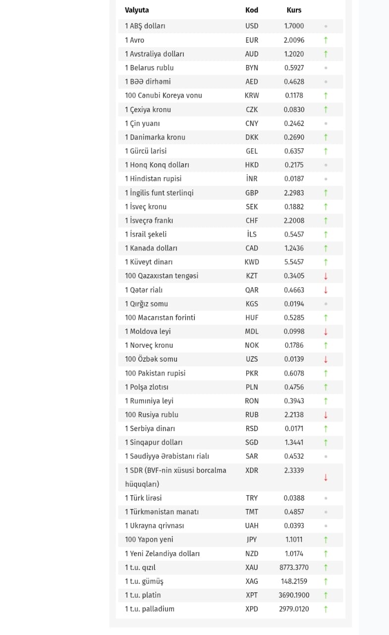 Azərbaycan Mərkəzi Bankı bu günün valyuta məzənnələrini açıqlayıb.