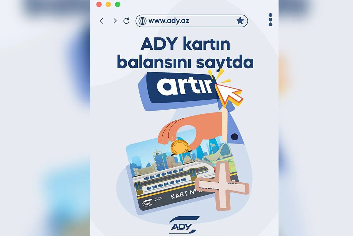 "Azərbaycan Dəmir Yolları" QSC-nin fiziki gediş kartlarının balansına www.ady.az saytı vasitəsilə də vəsait yükləmək mümkündür.