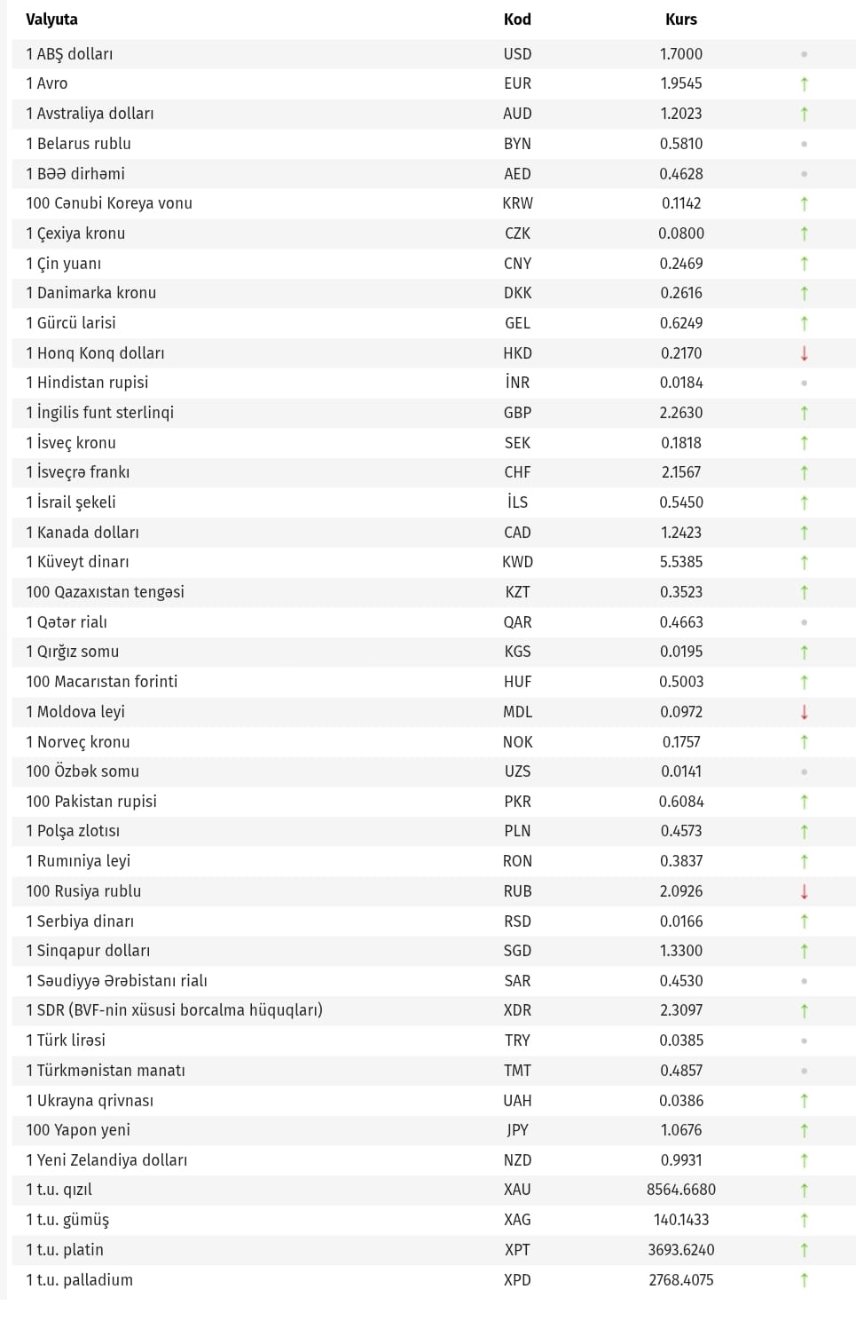 Azərbaycan Mərkəzi Bankı bu günün valyuta məzənnələrini açıqlayıb.