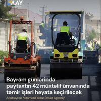 Bakıda bayram günlərində 42 ünvanda avtomobil yolları təmir olunacaq - FOTO