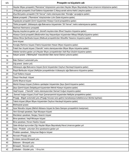 Agentlik təmir işlərini ümumilikdə 42 ünvanda aparacaq. Təmir olunacaq küçələrin ümumi sahəsi 151 849 kv.m təşkil edir.