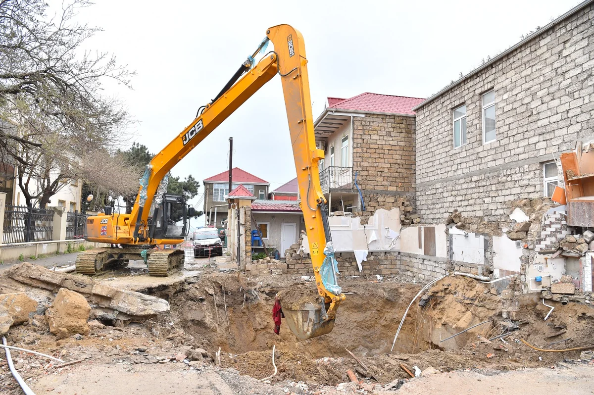 Kollektorun üzərində inşa edilmiş ev artıq sökülüb. ADSEA İri Şəhərlərin Birləşmiş Su Təchizatı Xidmətinin əməkdaşları yüklənmə nəticəsində çökən tullantı su kollektorunun təmir-bərpasını həyata keçirirlər. 9 metr dərinlikdə olan kollektorun üzərindən torpaq qatının götürülməsi üçün qazıntı işləri aparılır.