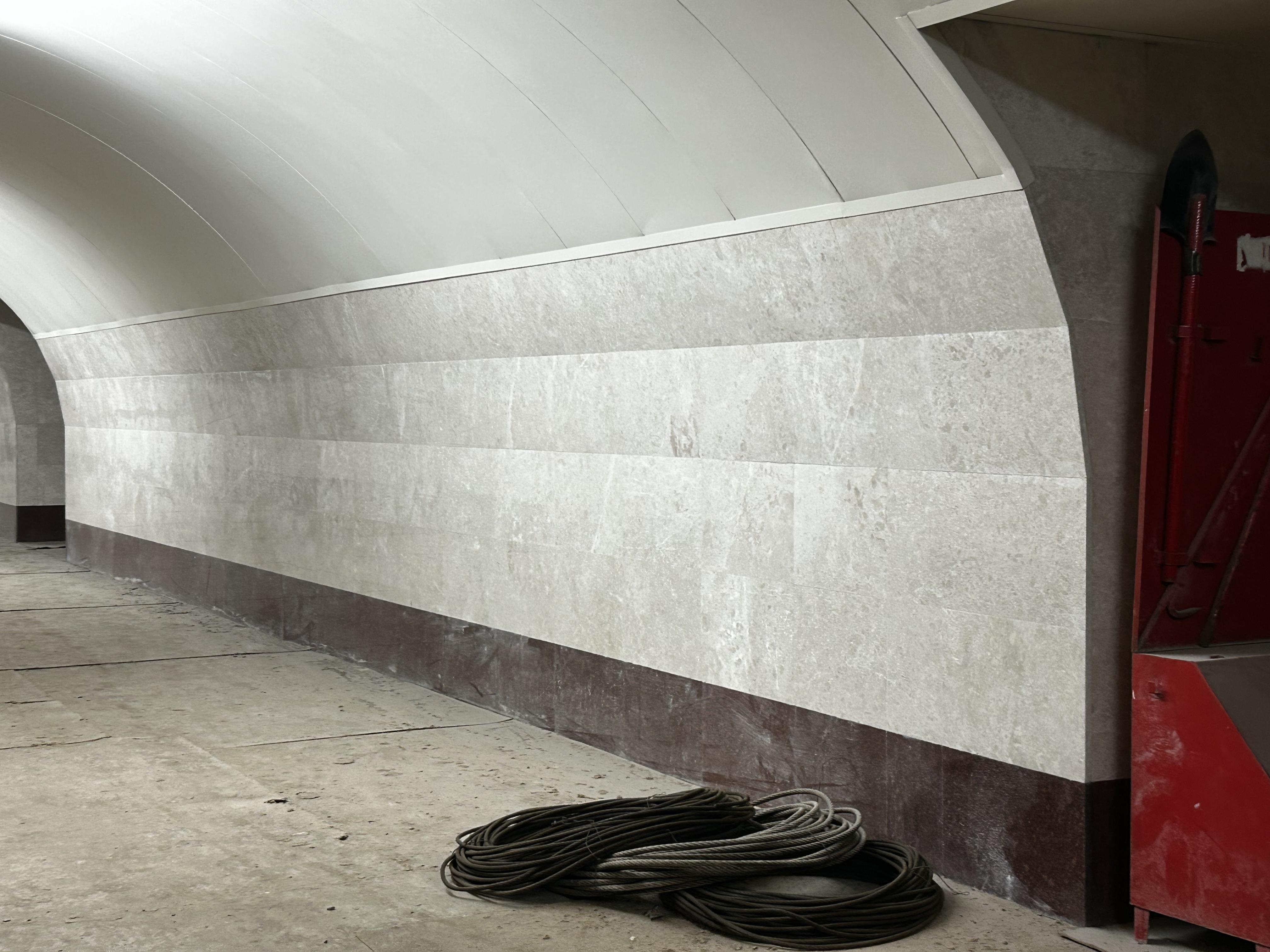 Keçidin inşası üçün qazıntı işləri və metal konstruksiyalı tunelin quraşdırılması artıq tamamlanıb. Hazırda “28 May” stansiyasının platforması ilə birləşmə hissəsində işlər davam edir. Paralel olaraq, üç hissədən ibarət pilləkənlərdə metal karkas qurularaq betonlama işlərinə hazırlıq görülür.