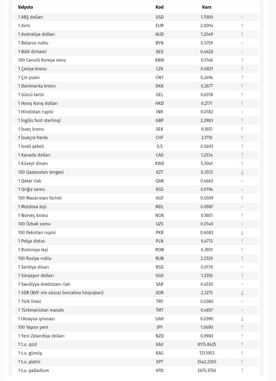 Azərbaycan Mərkəzi Bankı bu günün valyuta məzənnələrini açıqlayıb.