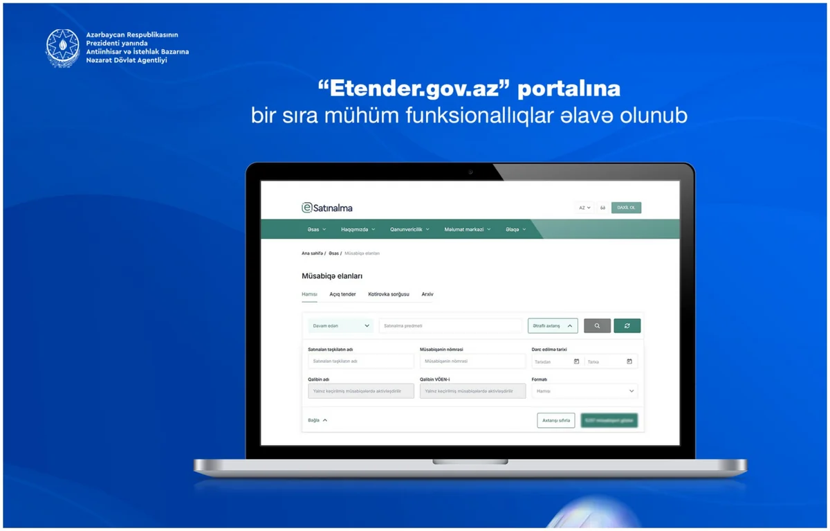 Dövlət satınalmaları sahəsində hesabatlılığın artırılması, proseslərin sadələşdirilməsi və rəqəmsallaşdırmanın genişləndirilməsi məqsədilə "Etender.gov.az" portalında bir sıra mühüm yeniliklər tətbiq edilib.