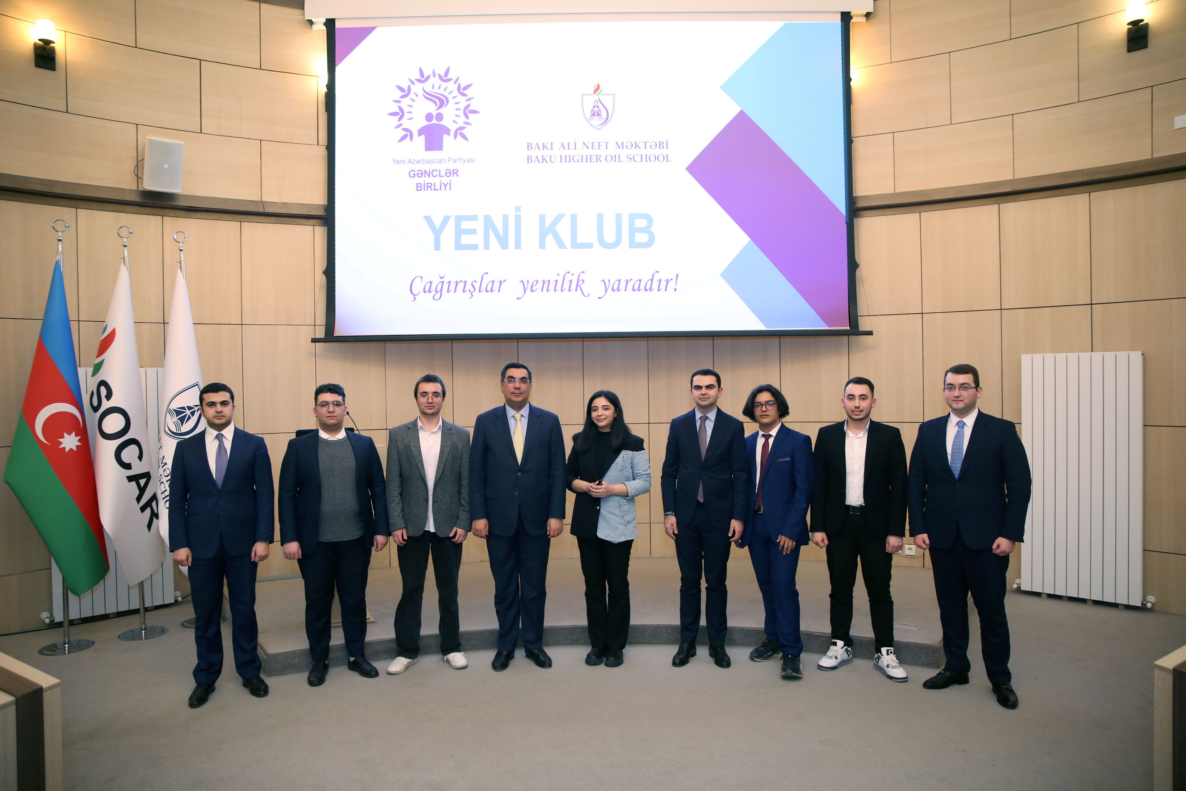 Təsis toplantısını giriş nitqi ilə açan Bakı Ali Neft Məktəbinin rektoru Elmar Qasımov ali təhsil müəssisəsində tələbələrin ictimai-sosial aktivliyini və onların şəxsi inkişafını dəstəkləyən klubun formalaşdırılmasının mühüm əhəmiyyətə malik olduğunu bildirib. O, “YENİ Klub”un önəmli təşəbbüslər irəli sürərək faydalı layihələr reallaşdıracağına inamını ifadə edib və uğurlar arzulayıb.