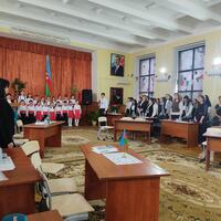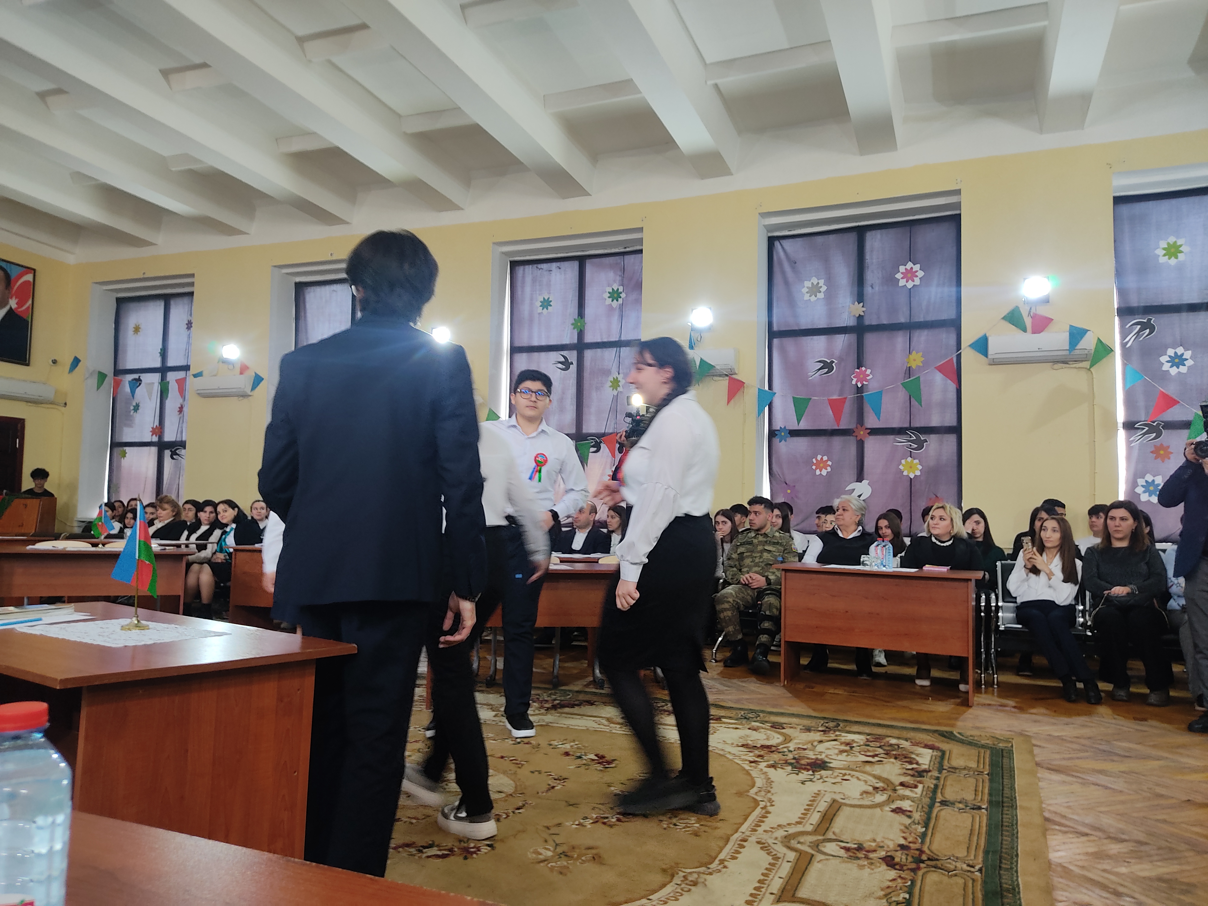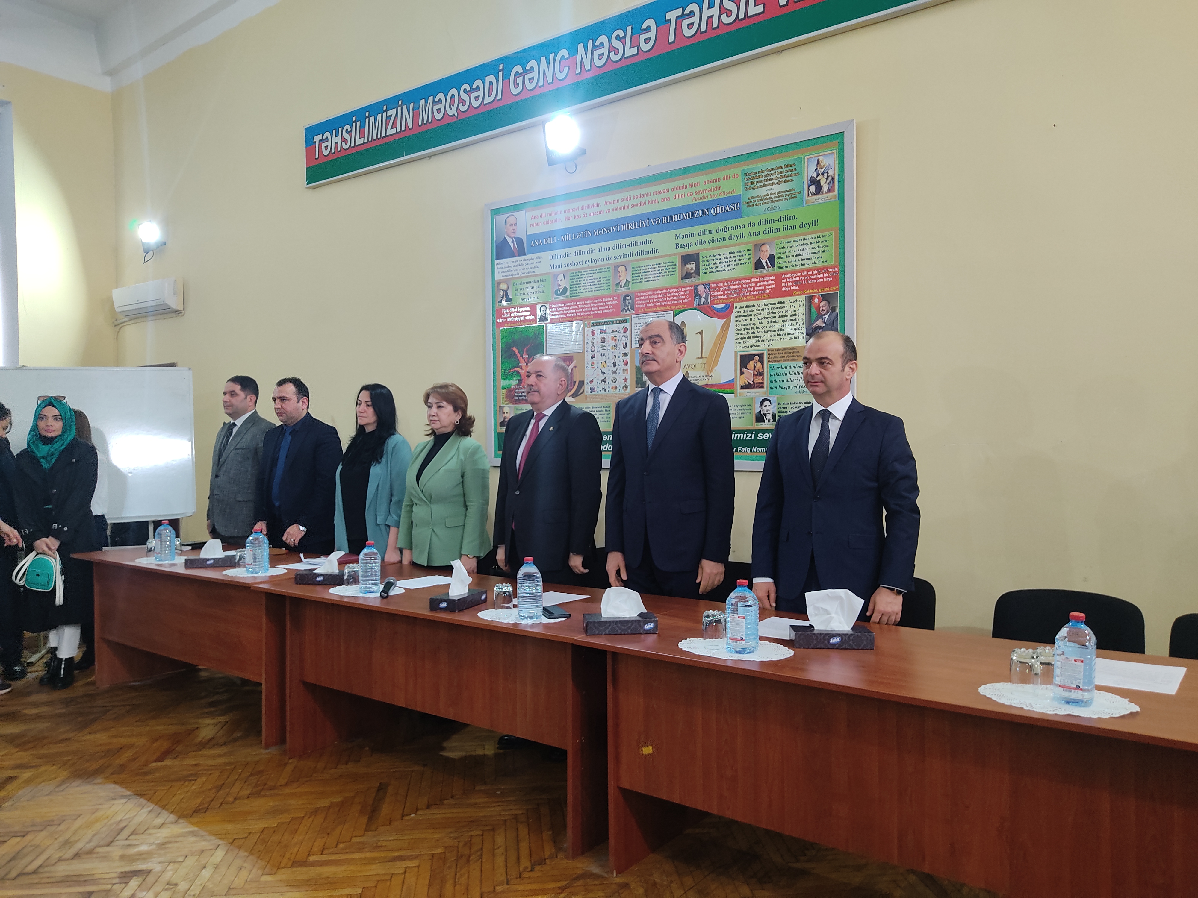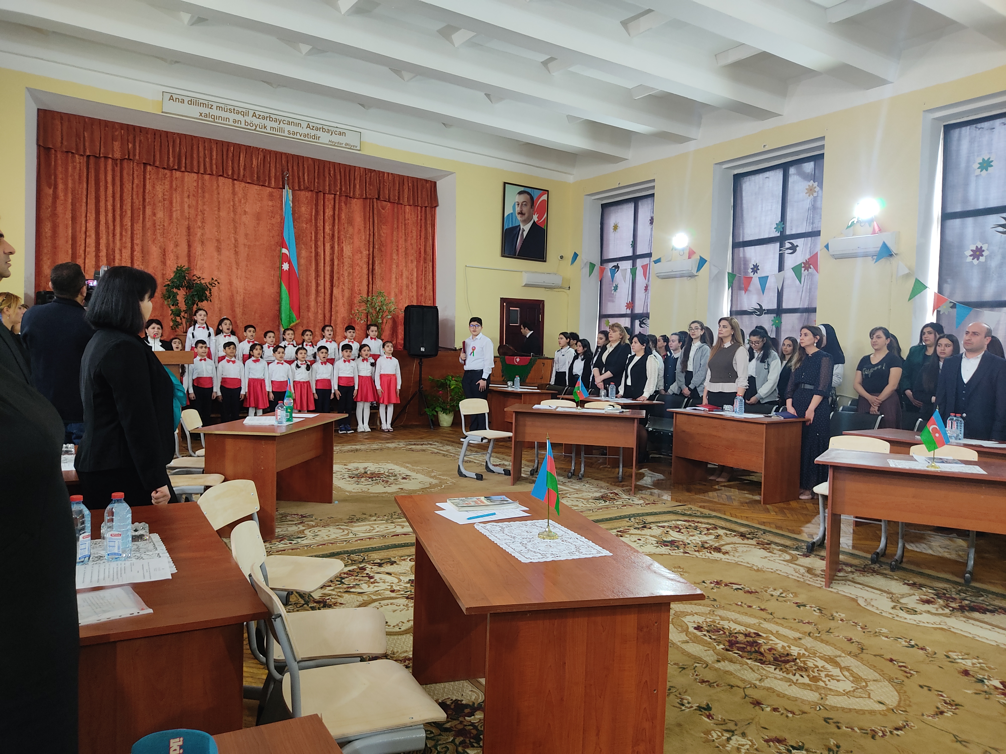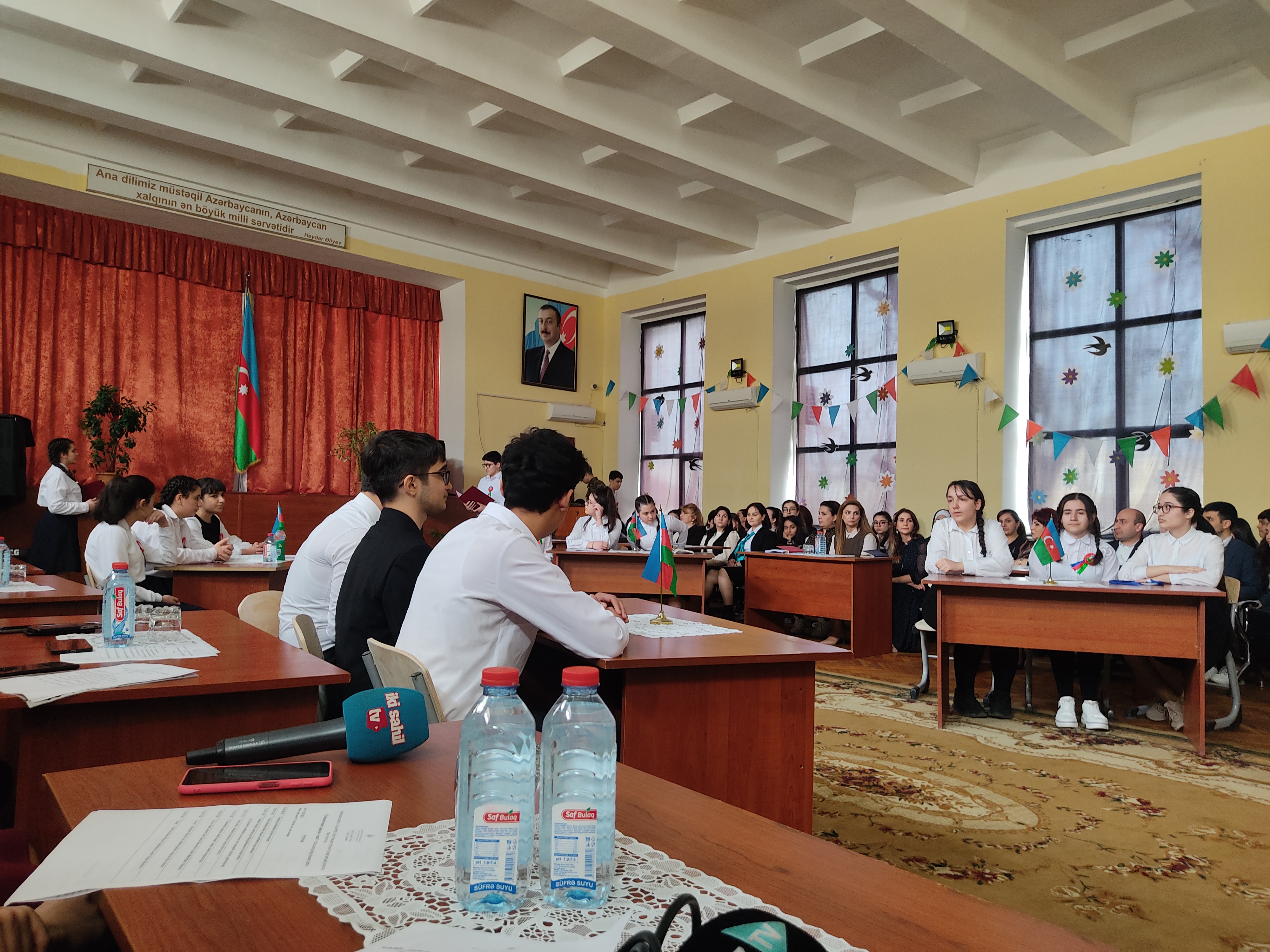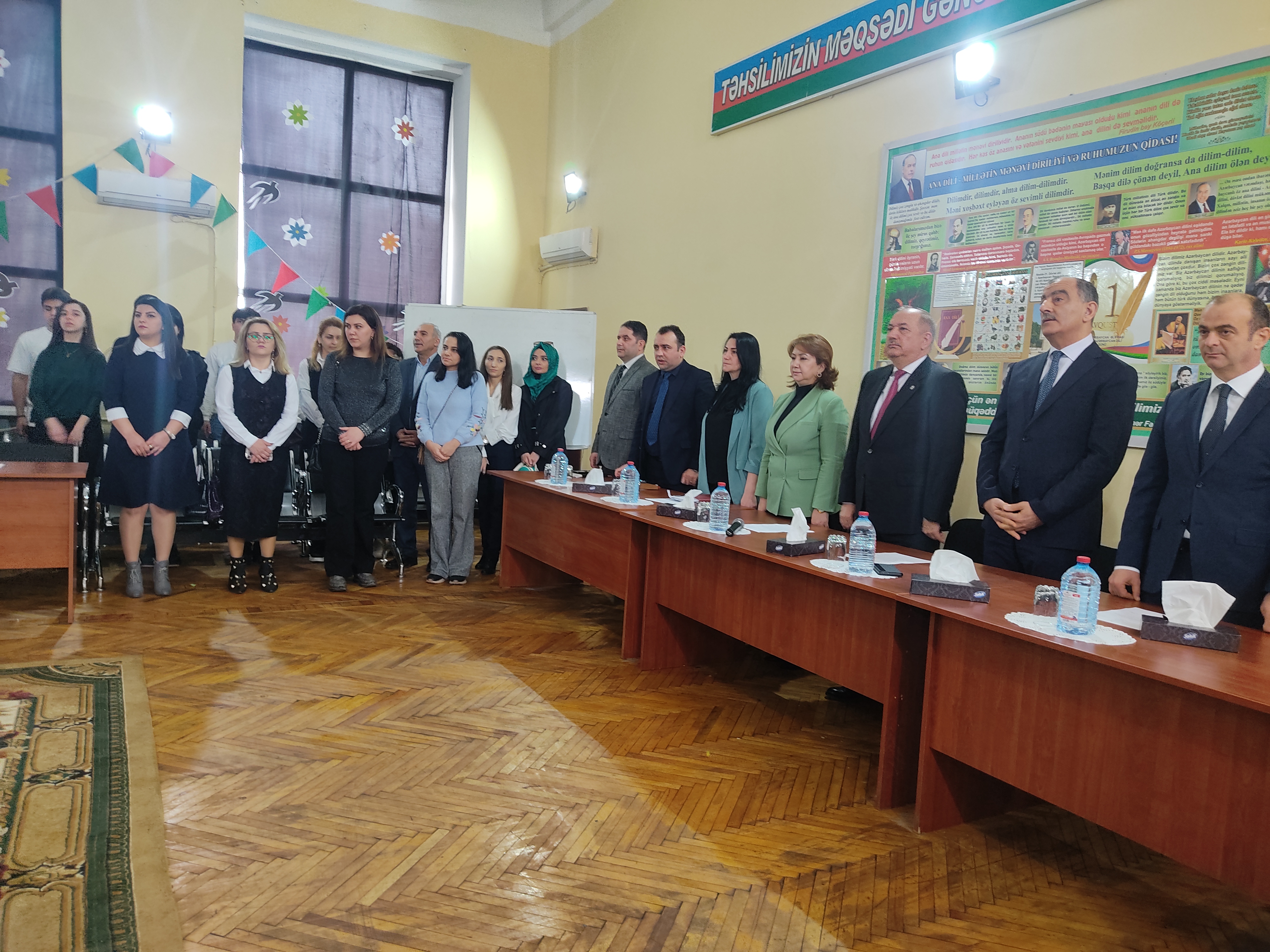 Sonra X sinif şagirdlərinin iştirakı ilə Heydər Əliyevə həsr olunan tarix fənni üzrə nümunəvi dərs təqdim olunub.