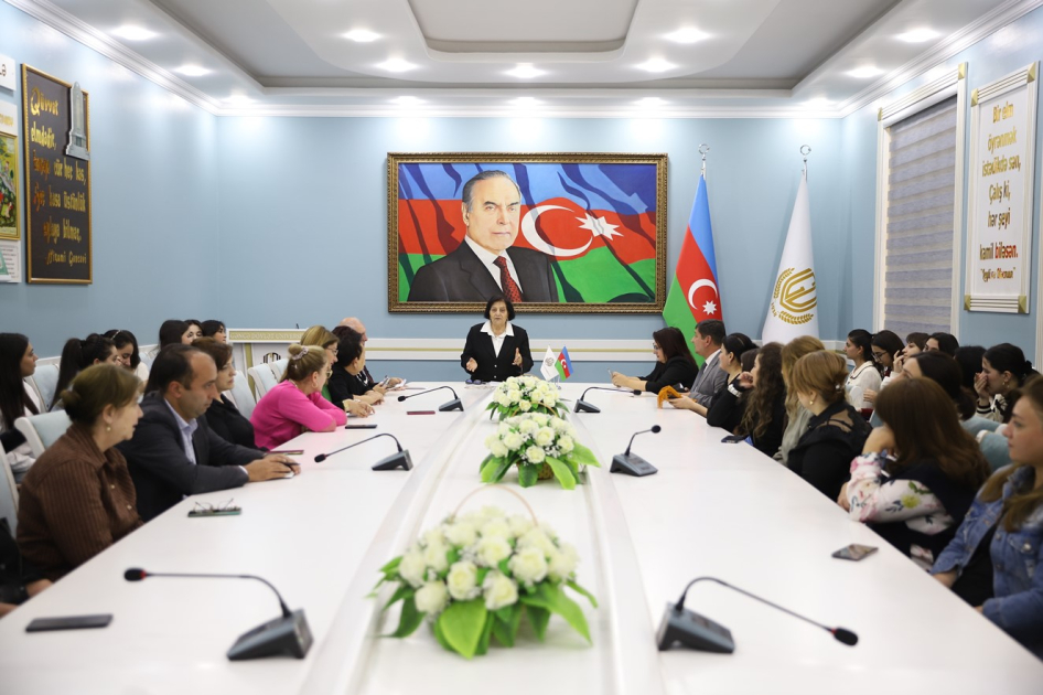 Gəncə Dövlət Universitetində (GDU) “AMEA-nın 80 illik yubileyi”nə həsr olunan dəyirmi masa keçirilib. Universitetdən SİA-nın bölgə müxbirinə verilən məlumata görə, tədbirdə çıxış edən humanitar məsələlər üzrə prorektor Gülsüm Fətəliyeva Prezident İlham Əliyevin “Azərbaycan Milli Elmlər Akademiyasının 80 illiyinin qeyd edilməsi haqqında” Sərəncamının Azərbaycan elminə, aliminə, ziyalılara, yeni elmi nəslə dövlət səviyyəsində verilən yüksək qiymətin və ehtiramın ifadəsi olduğunu vurğulayıb. Prorektor bildirib ki, AMEA 80 ildə böyük yol keçərək azərbaycançılıq ideologiyasına, milli kadr hazırlığına töhfə verib, görkəmli alimlər nəslini yetişdirib. Gülsüm Fətəliyeva AMEA-nın taleyində Ulu Öndər Heydər Əliyevin müstəsna rolundan da bəhs edərək vurğulayıb ki, dahi lider bu elmi qurumun fəaliyyətini daim diqqət mərkəzində saxlayıb. Ulu Öndər Heydər Əliyevin müdrikliklə müəyyən etdiyi və həyata keçirdiyi elm siyasəti bu gün Prezident İlham Əliyev tərəfindən uğurla davam etdirilir.