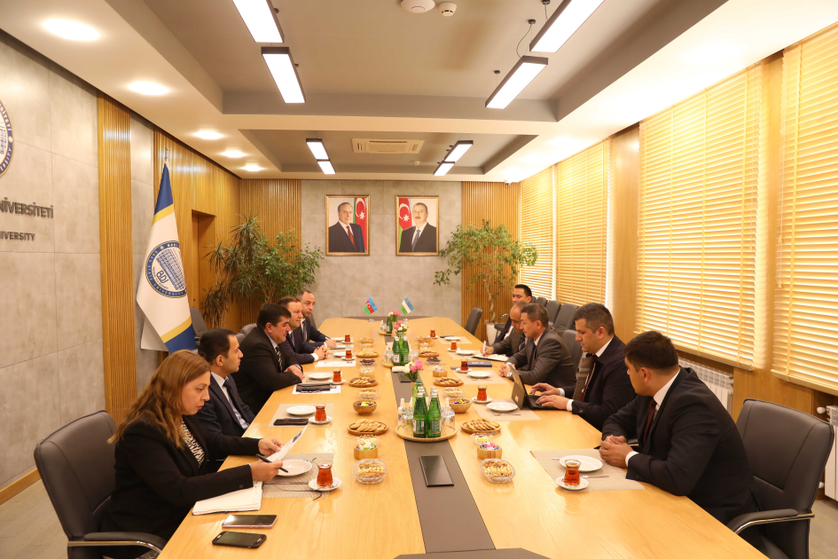Bakı Dövlət Universitetində (BDU) Özbəkistanın Biznes və Elm Universitetinin prorektoru Dilshod Xolmatovun rəhbərlik etdiyi nümayəndə heyəti ilə görüş keçirilib. BDU-dan SİA-ya bildirilib ki, elm və innovasiyalar üzrə prorektor Hüseyn Məmmədov qonaqlara ali məktəbin tarixi, strukturu, tədris və elmi fəaliyyəti barədə ətraflı məlumat verib. Bildirilib ki, BDU son illər Özbəkistanın nüfuzlu ali təhsil müəssisələri ilə əməkdaşlıq müqavilələri imzalayır, tələbə və müəllim mübadiləsi proqramları həyata keçirir. Birgə layihə və elmi tədqiqatlar regionun elmi potensialının gücləndirilməsi və təhsilin keyfiyyətinin artırılmasına xidmət edir. Prorektor qeyd edib ki, BDU-da Tədqiqat, İnkişaf və İnnovasiyalar üzrə Mükəmməllik Mərkəzi, 22 elmi-tədqiqat laboratoriyası fəaliyyət göstərir. Özbəkistanın Biznes və Elm Universiteti ilə xüsusilə təbiət və dəqiq elmlər sahələrində geniş elmi əməkdaşlıq imkanları var.