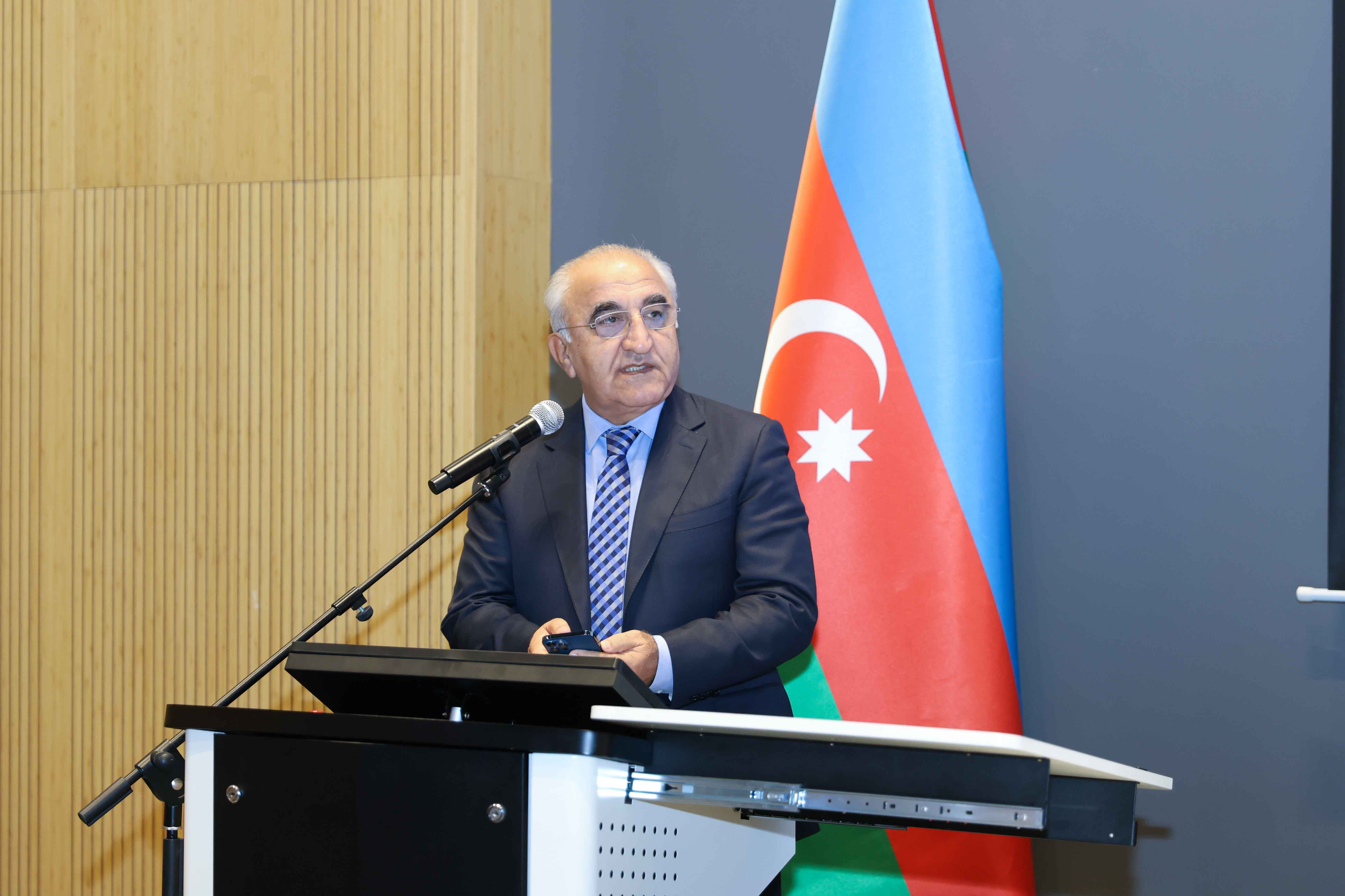 Rektor qeyd edib ki, Ulu Öndər Heydər Əliyevin uzaqgörən siyasəti nəticəsində AMEA Azərbaycanın intellektual dayağı və beyin mərkəzi kimi formalaşıb və bu uğurlu siyasət sayəsində Azərbaycan elmi yeni inkişaf mərhələsinə qədəm qoyub: “Prezident İlham Əliyevin rəhbərliyi ilə elmin inkişafı dövlətin prioritet istiqamətlərindən birinə çevrilib. Elmi tədqiqatların rəqəmsallaşdırılması, innovasiyaların dəstəklənməsi, gənc alimlərin inkişaf proqramları elmin müasir çağırışlara uyğunlaşdırılmasına xidmət edir,” – deyə prof.Ədalət Muradov bildirib. Rektor çıxışında Birinci vitse-prezident, Heydər Əliyev Fondunun prezidenti Mehriban xanım Əliyevanın ölkə elminin inkişafındakı müstəsna xidmətlərini də xüsusi vurğulayıb.