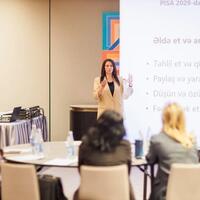 BDU-nun Yeni media və kommunikasiya nəzəriyyəsi kafedrasının dosenti Könül Niftəliyeva "Media savadlılığının tədrisi: metodika və effektiv yanaşmalar" mövzusunda təqdimatla çıxış edərək pedaqoji yanaşmaların modernləşdirilməsinin, şagirdlərin analitik düşünmə və məlumatları düzgün qiymətləndirmə bacarıqlarının inkişafına yönəlmiş dərs modellərinin tətbiqinin vacibliyini vurğulayıb.