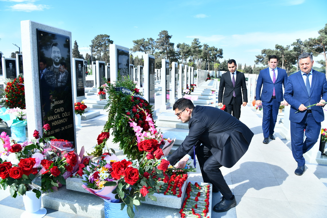 Azərbaycan Dövlət Neft və Sənaye Universitetinin (ADNSU) rektoru, dosent Rüfət Əzizov və universitetin nümayəndə heyəti Zəfər Günü ərəfəsində 44 günlük Vətən müharibəsində şəhid olmuş universitet məzunlarının ailələrini ziyarət edib. Görüşlər zamanı rektor Rüfət Əzizov şəhid ailələrinin qayğı və ehtiyacları ilə maraqlanıb, Vətən müharibəsində Ali Baş Komandan İlham Əliyevin rəhbərliyi altında Azərbaycan Ordusunun göstərdiyi qəhrəmanlıqdan danışıb. O qeyd edib ki, hərbçilərimizin, o cümlədən şəhidlərimizin göstərdiyi igidlik nəticəsində bu gün suveren Azərbaycanın hər yerində üçrəngli bayrağımız qürurla dalğalanır. Rektor vurğulayıb ki, ADNSU şəhid məzunlarının ailələrini daim diqqətdə saxlayır və onları universitet ictimaiyyətinin ayrılmaz bir hissəsi kimi dəyərləndirir. Universitet nümayəndələri paytaxtla yanaşı, Qazax, Ağstafa, Şəki, Oğuz, Neftçala, Salyan və digər rayonlarda yaşayan şəhid ailələrini də ziyarət edərək ADNSU kollektivi adından ehtiramlarını bildiriblər. Ziyarətlər zamanı şəhidlərin xatirə abidələri önünə gül dəstələri qoyulub.