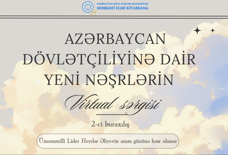 Azərbaycan Milli Elmlər Akademiyasının (AMEA) Mərkəzi Elmi Kitabxanası (MEK) fonduna daxil olan Azərbaycan dövlətçiliyinə dair yeni informasiya resurslarının virtual sərgisinin (https://heyzine.com/flip-book/803abd382a.html) 2025-ci il üzrə ikinci buraxılışını təqdim edir.