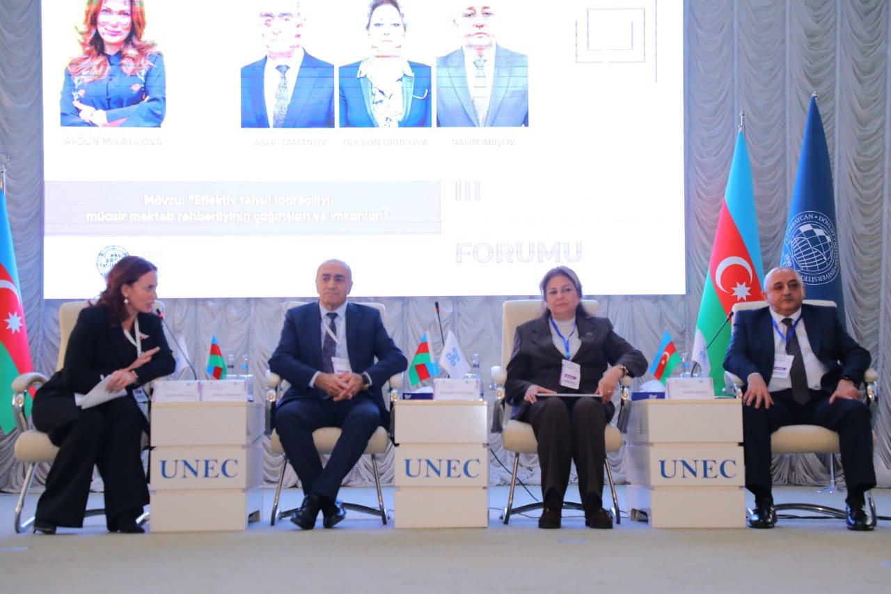 “Gələcəyin təhsil modelini birlikdə formalaşdıraq” devizi ilə keçirilən forumda spikerlər -Əməkdar müəllim, Amonaşvili Humanist Pedaqogika Akademiyasının professoru Asif Cahangirov “Alfa nəslinin təlim-tərbiyəsində yeni yanaşmalar”, Azərbaycan Respublkası Təhsil İnstitunun direktoru səlahiyyətlərinin icraçısı Elnur Əliyev “Qiymətləndirmə nəticələrinin real tədris dəyişikliklərinə təsiri və məktəb rəhbərlərinin rolu,