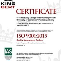 Tədris və idarəetmə proseslərinin müasir dövrün tələblərinə uyğunlaşdırılması istiqamətdə həyata keçirilən sistemli işlərin nəticəsi olaraq, UNEC nəzdində Qida Sənayesi Kolleci ISO 9001:2015 – Keyfiyyətin İdarəetmə Sistemi və ISO 21001:2018 – Təhsil və Təlim Təşkilatları üçün İdarəetmə Sistemi standartları üzrə uyğunluq auditindən uğurla keçib.