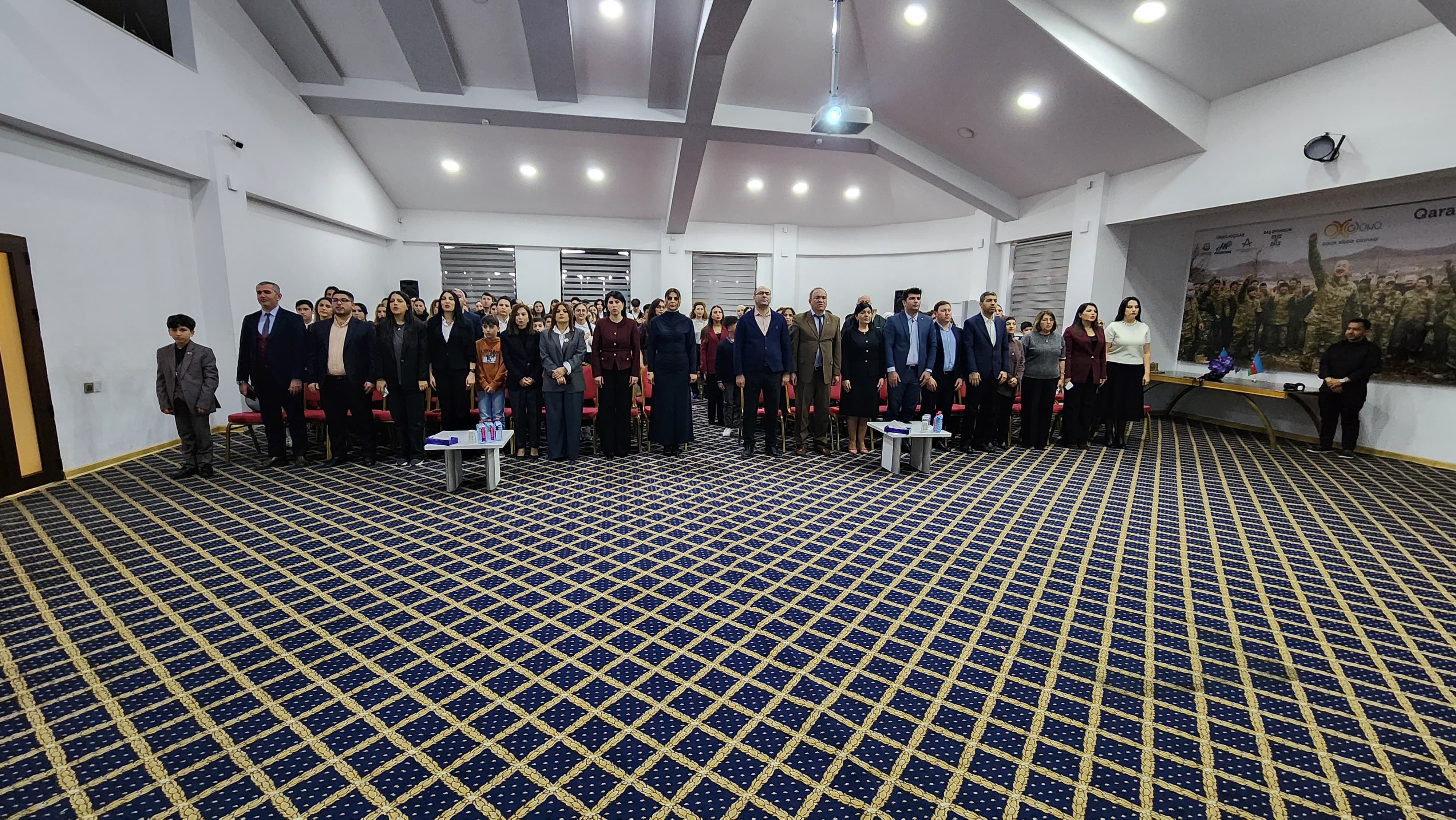 SİA xəbər verir ki, tədbir başlamazdan əvvəl Vətən uğrunda canından keçən qəhrəman şəhidlərin əziz xatirəsi bir dəqiqəlik sükutla yad edilib, Azərbaycan Respublikasının Dövlət Himni səsləndirilib.