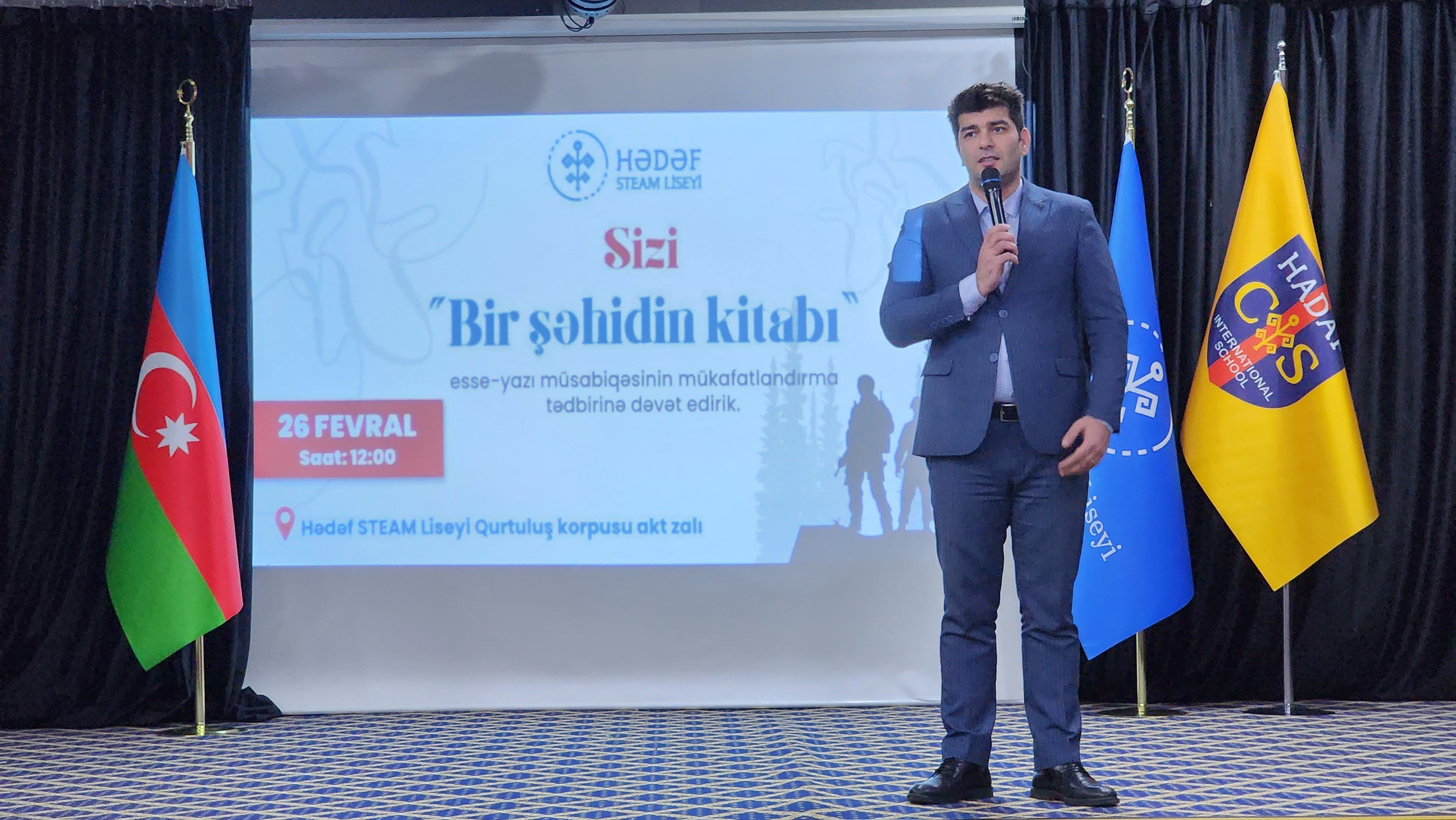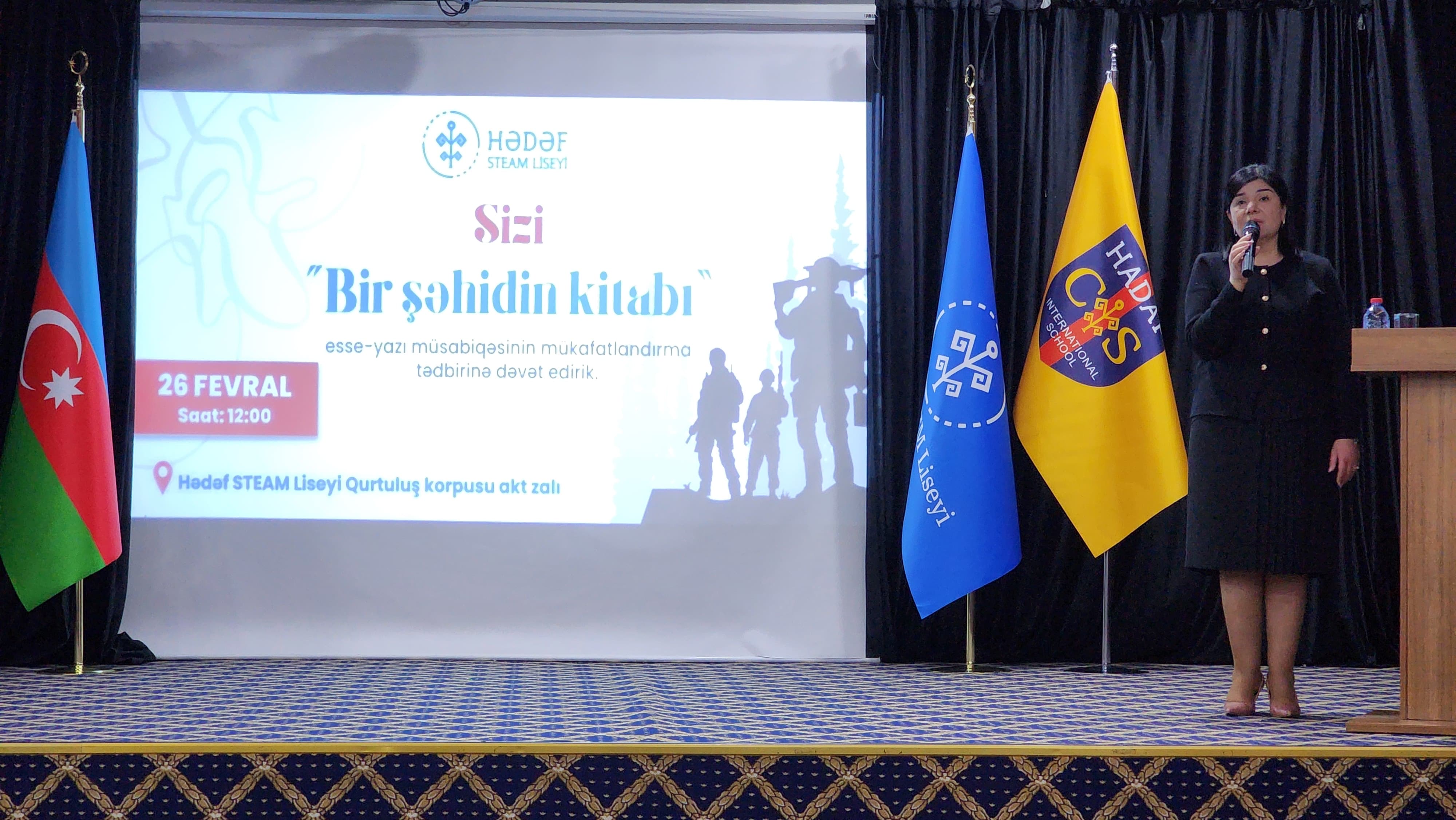 Bildirilib ki, artıq bir neçə ildir Hədəf Liseyində ardıcıl şəkildə həyata keçirilən “Bir şəhidin kitabı” layihəsi gənc nəslin vətənpərvərlik ruhunda formalaşmasına mühüm töhfə verir. Bu il layihəyə 60 nəfəri Abşeron rayon məktəblərindən olmaqla ümumilikdə 75 şagird qoşulub, şəhidlərimizə həsr olunan onlarla hekayə və kitab, eyni zamanda elektron kitab hazırlanıb. Kitabların ideyası, mətnləri və tərtibatı şagirdlərin öz zəhməti və yaradıcılığı əsasında ərsəyə gəlib.