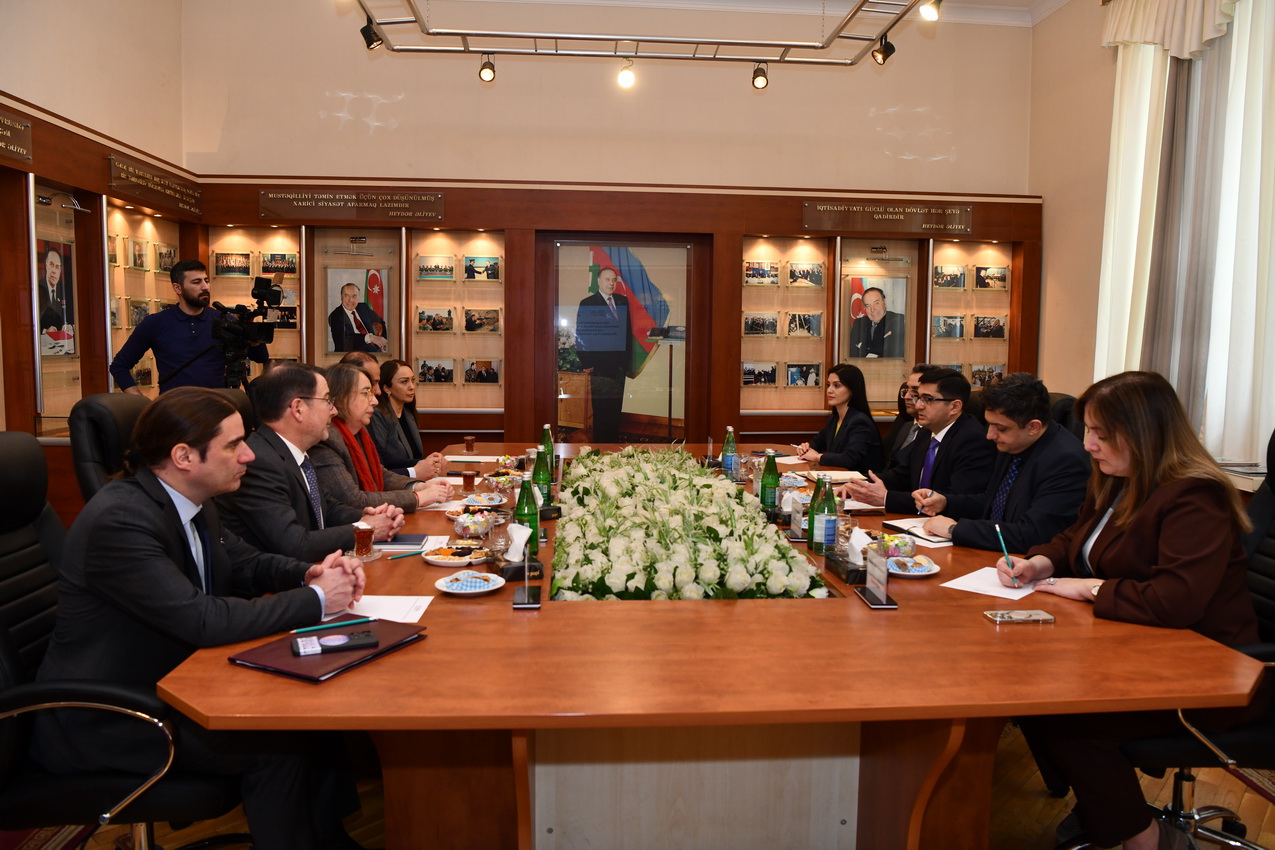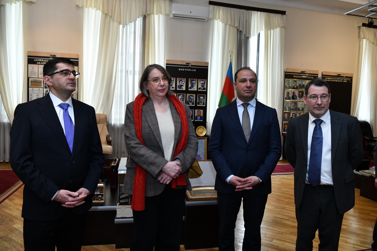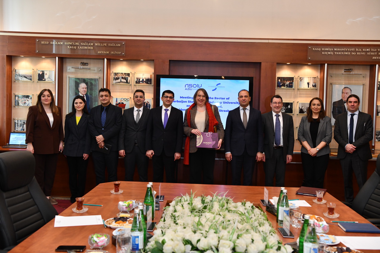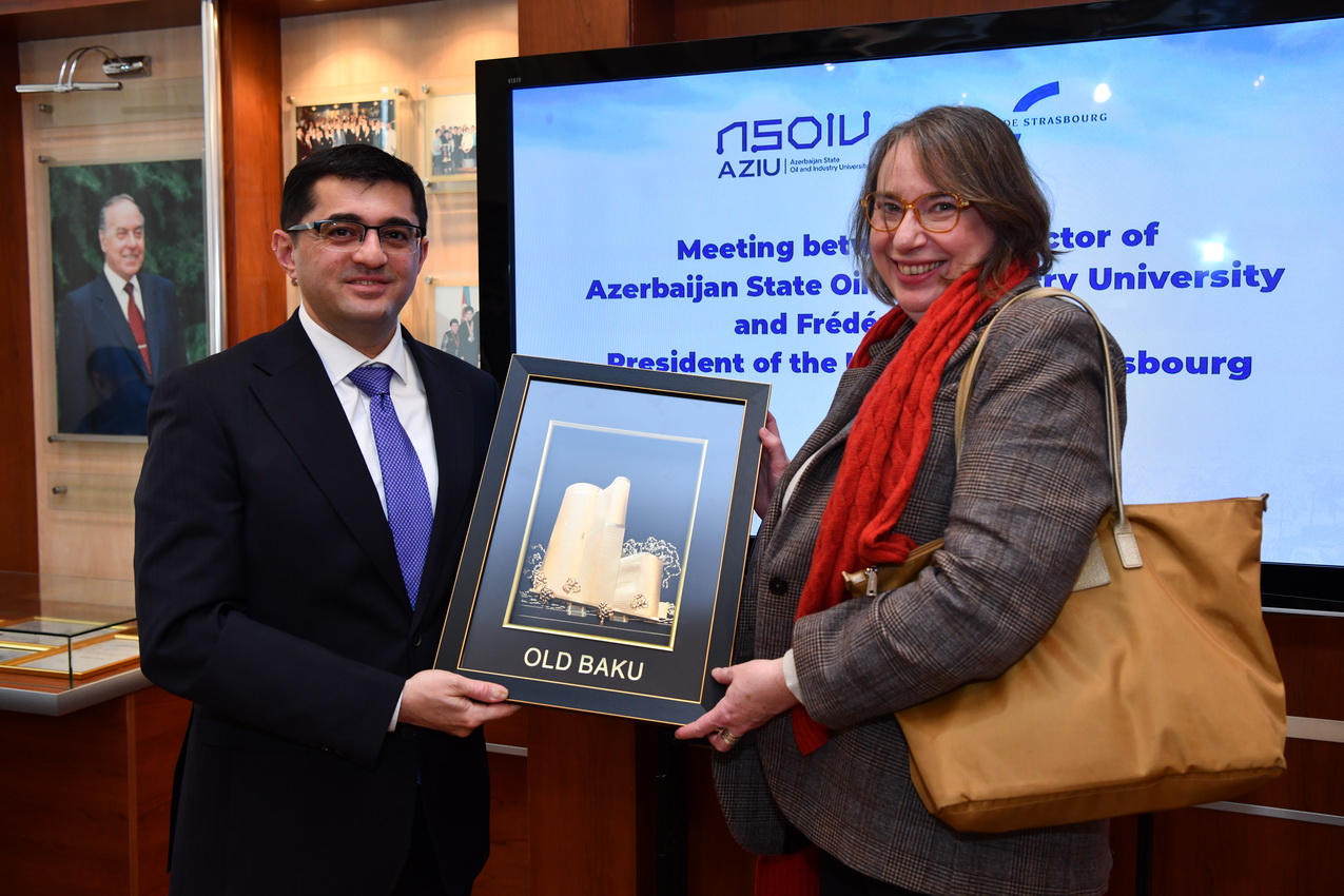Martın 16-da Azərbaycan Dövlət Neft və Sənaye Universitetində (ADNSU) Fransanın Strasburq Universitetinin prezidenti Frédérique Berrod ilə görüş keçirilib. ADNSU-nun rektoru, dosent Rüfət Əzizov, o cümlədən universitetin prorektorları və struktur bölmə rəhbərlərinin iştirakı ilə keçirilən görüşdə ADNSU-nun nəzdində fəaliyyət göstərən Azərbaycan-Fransız Universitetinin (UFAZ) ikili diplom proqramının icrası ilə bağlı geniş fikir mübadiləsi aparılıb. Görüş zamanı UFAZ-ın transmilli təhsil sahəsində unikal model olduğu vurğulanıb. Eyni zamanda, UFAZ məzunlarının əldə etdikləri uğurlar, onların karyera inkişafı, eləcə də hazırda həm ADNSU-da, həm də UFAZ-da pedaqoji və elmi-tədqiqat fəaliyyətinə cəlb olunmaları barədə məlumat verilib. ADNSU-nun rektoru, dosent Rüfət Əzizov çıxışı zamanı universitetin əsas fəaliyyət istiqamətləri barədə ətraflı təqdimatla çıxış edib. Qeyd olunub ki, 10 il əvvəl təsis edilən UFAZ fəaliyyətini əsaslı şəkildə genişləndirərək uğurla fəaliyyət göstərir, burada bakalavr və magistratura təhsil pillələri üzrə yüksəkixtisaslı mütəxəssislərin hazırlanır. Strasburq Universitetinin prezidenti Frédérique Berrod rəhbərlik etdiyi ali təhsil müəssisəsinin bir sıra universitetlərlə geniş əməkdaşlıq əlaqələrinə malik olduğunu bildirib. O, UFAZ-ın beynəlxalq əməkdaşlıq çərçivəsində ən uğurlu layihələrdən biri olduğunu vurğulayıb və gələcəkdə iki ölkə arasında birgə elmi-tədqiqat layihələrinin həyata keçirilməsinə xüsusi önəm veriləcəyini qeyd edib.